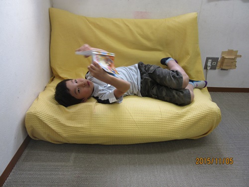 ソファーが来ました〜 独り占め♪ 狭くないですか? ひよどり学童にソファーが来ました! 指導員のありちゃんが家にあったソファーを寄付してくれました♪ その日から皆のお気に入り!座れるだけぎゅうぎゅうに座って仲良く利用しています(´▽`)