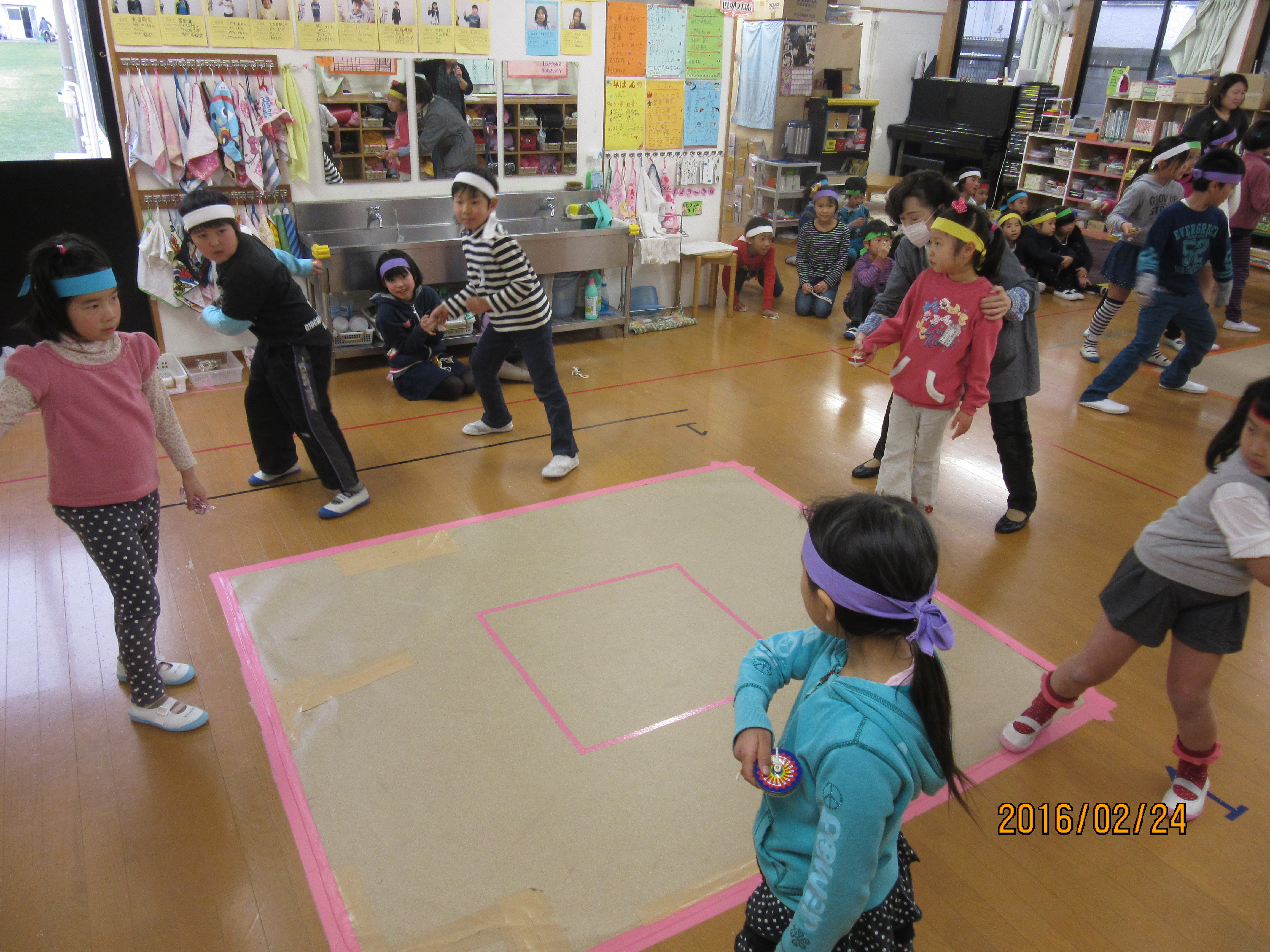 こまが止まってしまった人は座って、残っているこまの応援や勝負の行方をジッと見守っています。時々、グループの同じ子が生き残るように神様に祈るポーズで行く末を見守っている子もいました。真剣さがひしひしと伝わってきました!