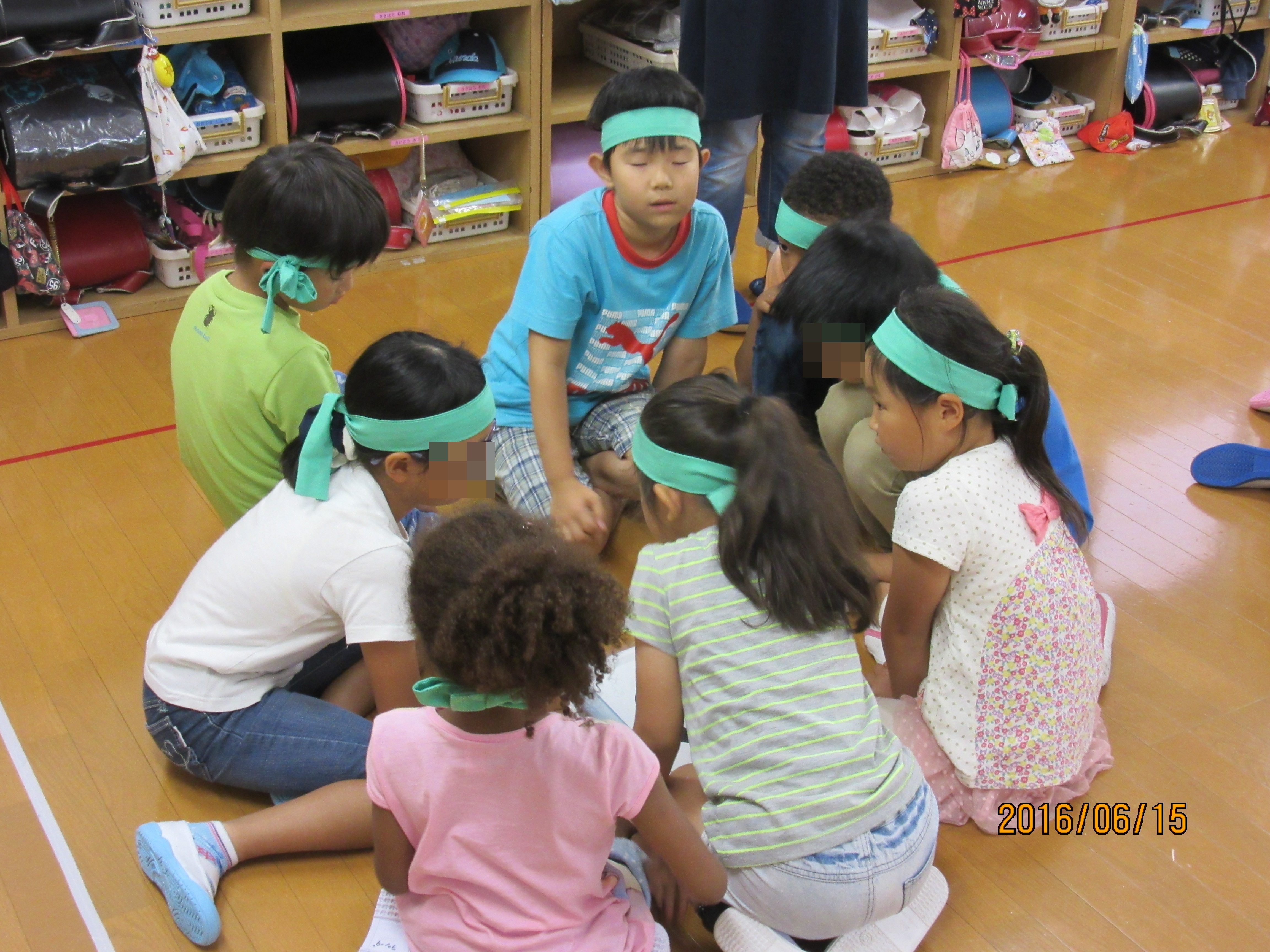 2つ目は、カードあつめ!手元に3〜4枚の自分のチームのカードを持ってスタート。他の班の子とジャンケンをして勝ったら相手チームのカードをもらい、負けたら自分チームのカードを渡します。自分のカードが手元からなくなったら、もしくは制限時間が来たら終了!班で集まって、自分達の班以外のカードを全員で何枚集められたかで、多かった順でランキングが決定するというゲーム(*゜ー゜)ゲームの主旨を理解せず、自分のカードを取られまいと逃げ回る子もいたりもしました…(笑)