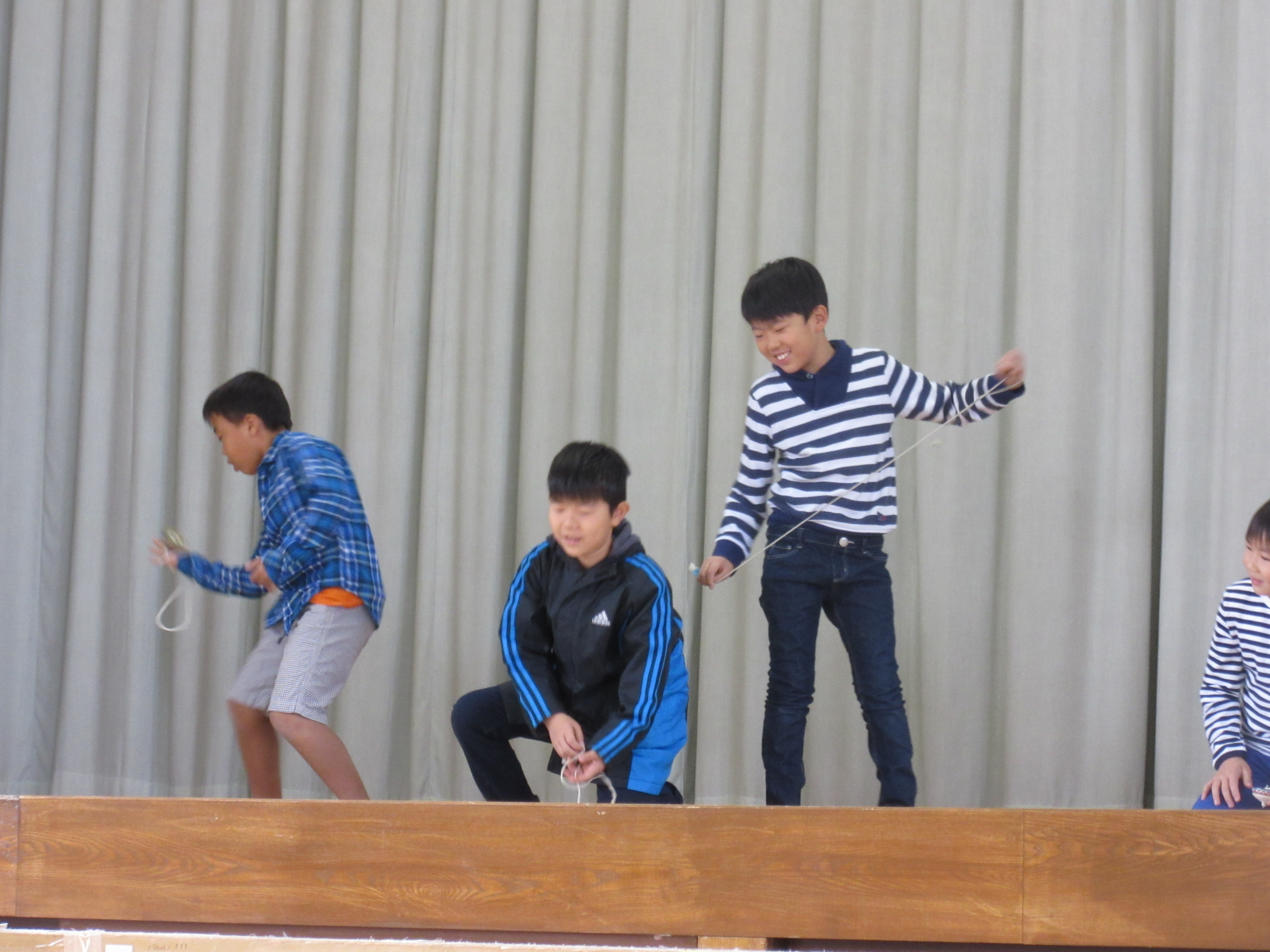 すこやかカーニバル②(※更新遅れてすみません) 1年生がこまステージに挑戦! こちらは、こまとけん玉とダブルダッチと歌の写真です♪ みんなほとんど笑顔で写っているんです( ´艸`) 楽しんでくれているのが良くわかります★ 今思い返すと、今年のすこやかカーニバルのステージは1年生がすごく活躍していました♪とても意欲的にカーニバルのステージを楽しんでくれていて嬉しいです(*゜ー゜) こちらはベテランこま名人の2人♪ けん玉は集中力が命!! ダブルダッチはこちらも1年生♪ 大きな口で歌えてます★