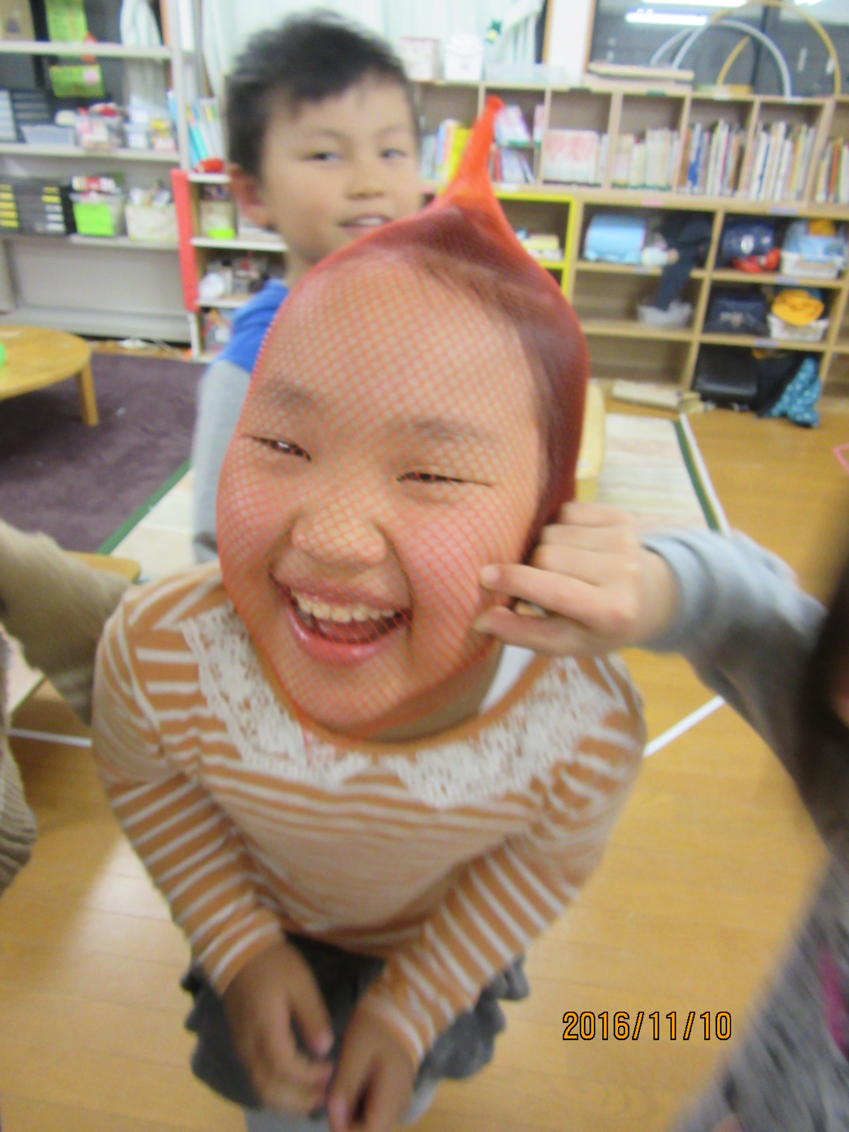 みかんのネットをほしいというので… 女子なのに… あげたらこうなりました(-ω-;) 保護者の皆さんすみません… でもはしゃぐこの子達を見たら どうしてもブログに載せたくなりました。 許してください(´∀`;) すごく楽しそうでしょう?♡ こういう子ども達のゲラゲラ笑ながら面白いことやる雰囲気や姿がたまらなく大好きです★ 男子は照れて写真撮らせてくれないんです( ;∀;) 女子なのに〜…