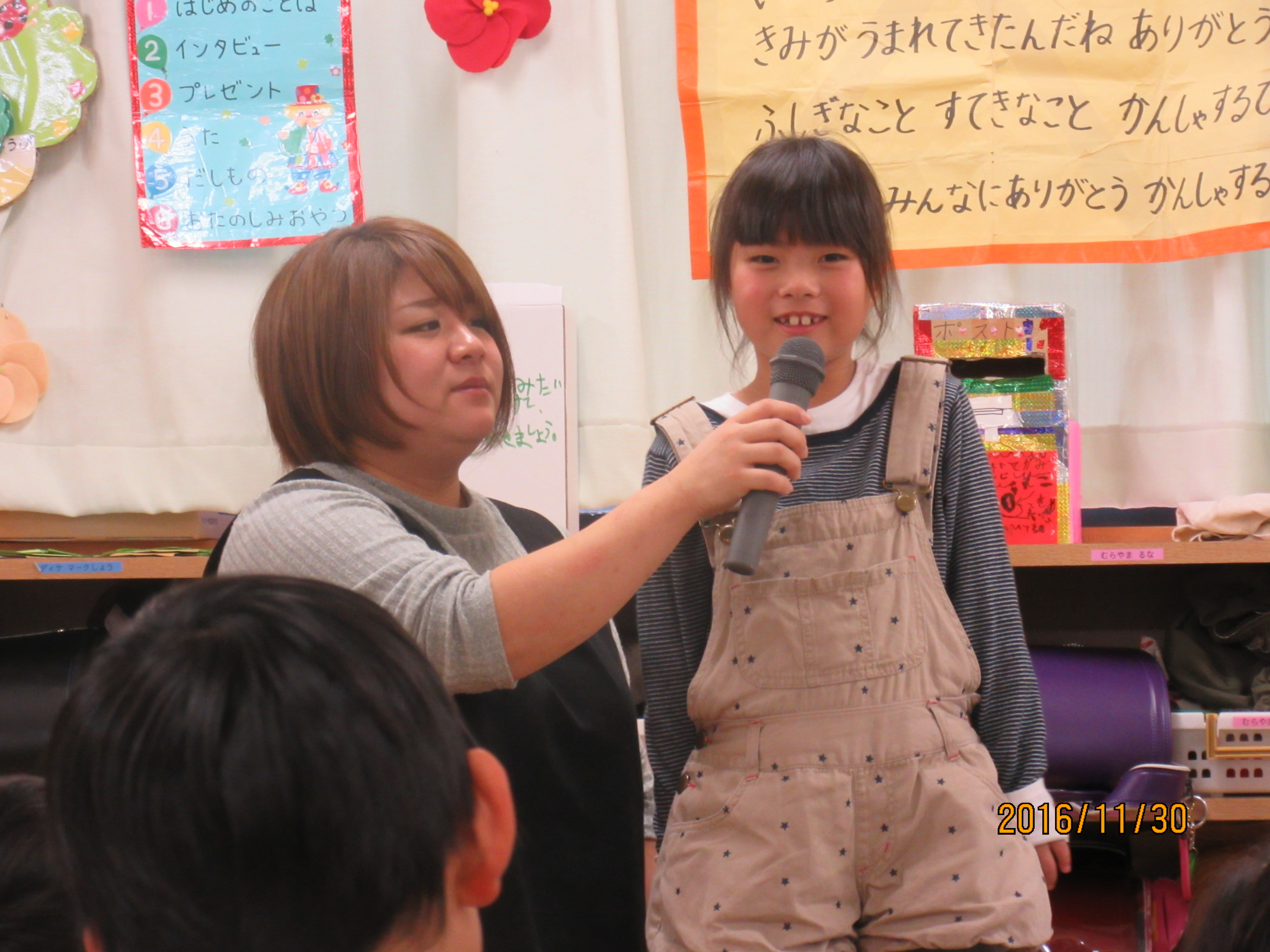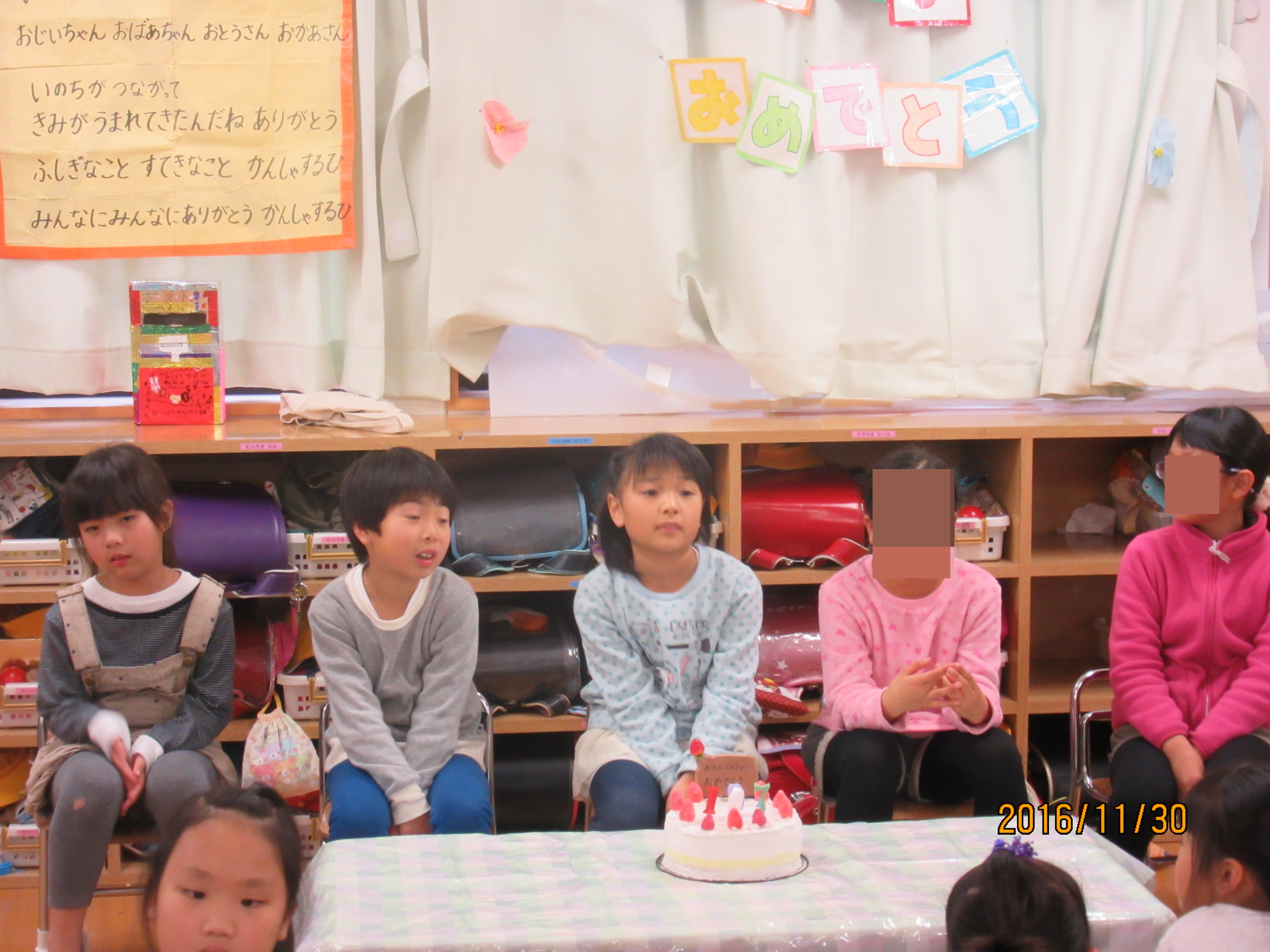 HAPPY BIRTHDAY★NOVEMBER 5人のお友だちが誕生日! 11月生まれさん♪お誕生日おめでとうございます!ヽ(≧▽≦)ノ ひよどりの11月生まれさんはこのメンバー★ 皆でお祝いをしました! インタビューに照れます こちらはデレデレ(笑) 3年生にもなるとピシッとしてます★ 最後はフーッとろうそくを消しました(o^―^o)