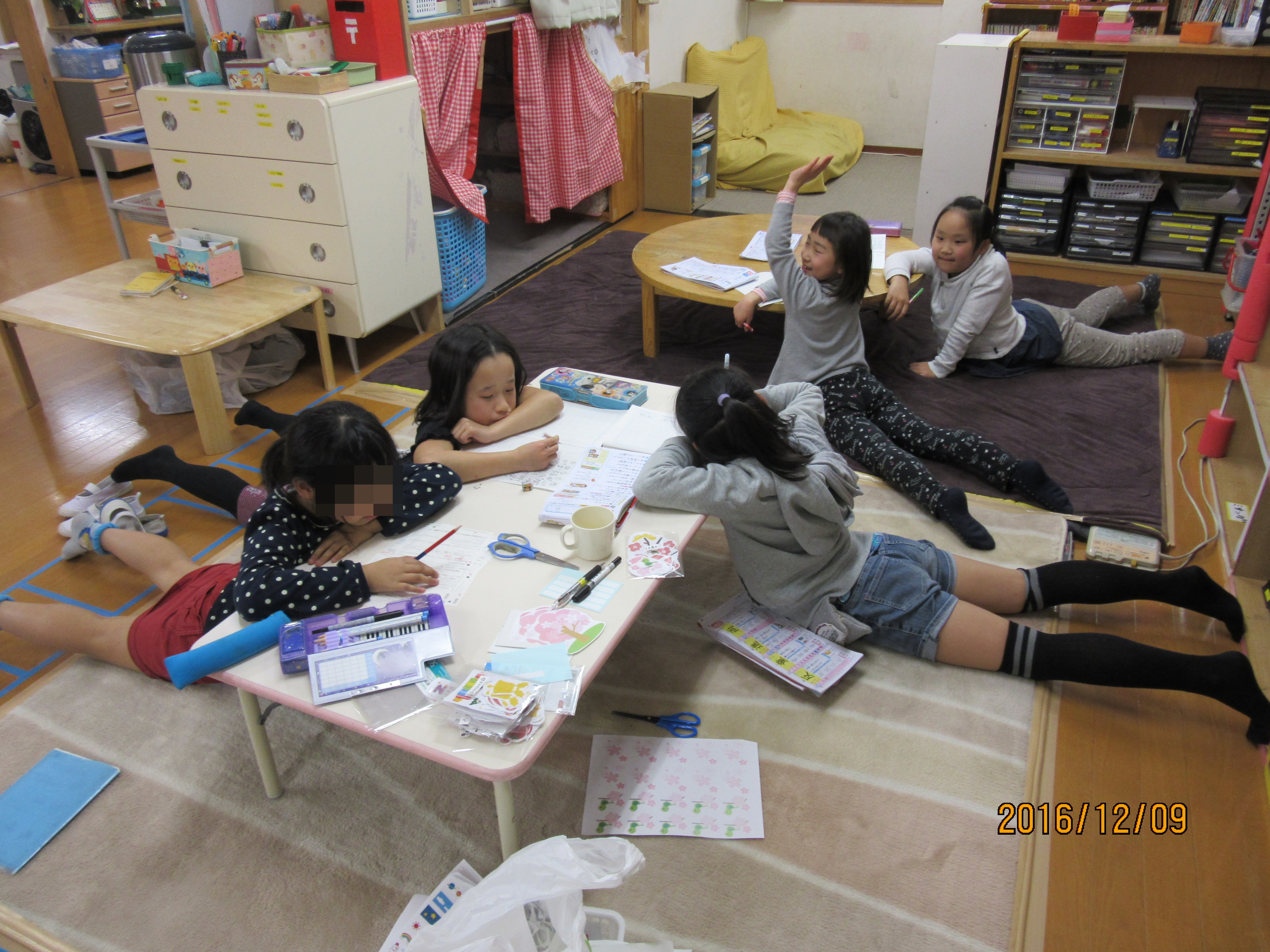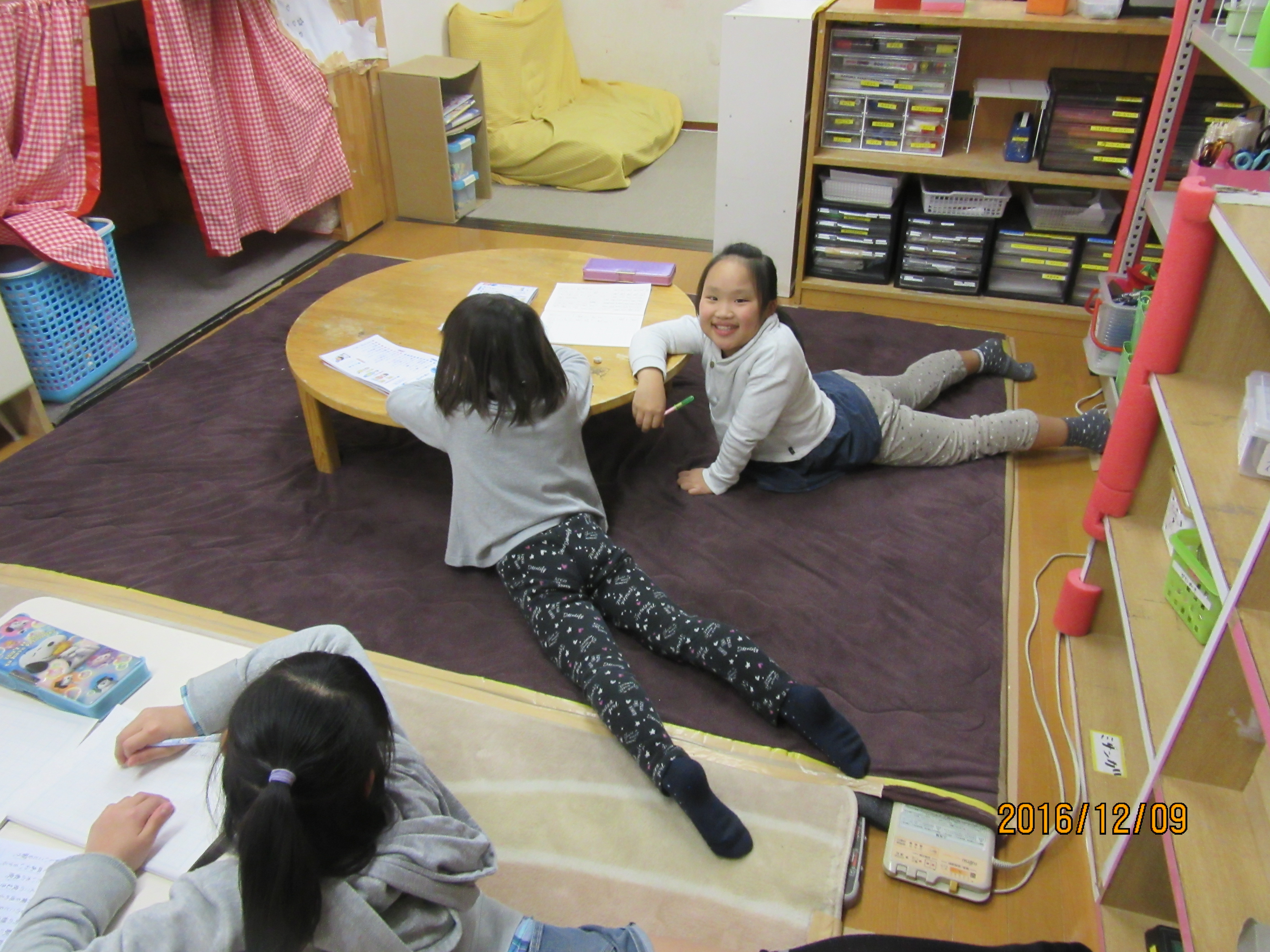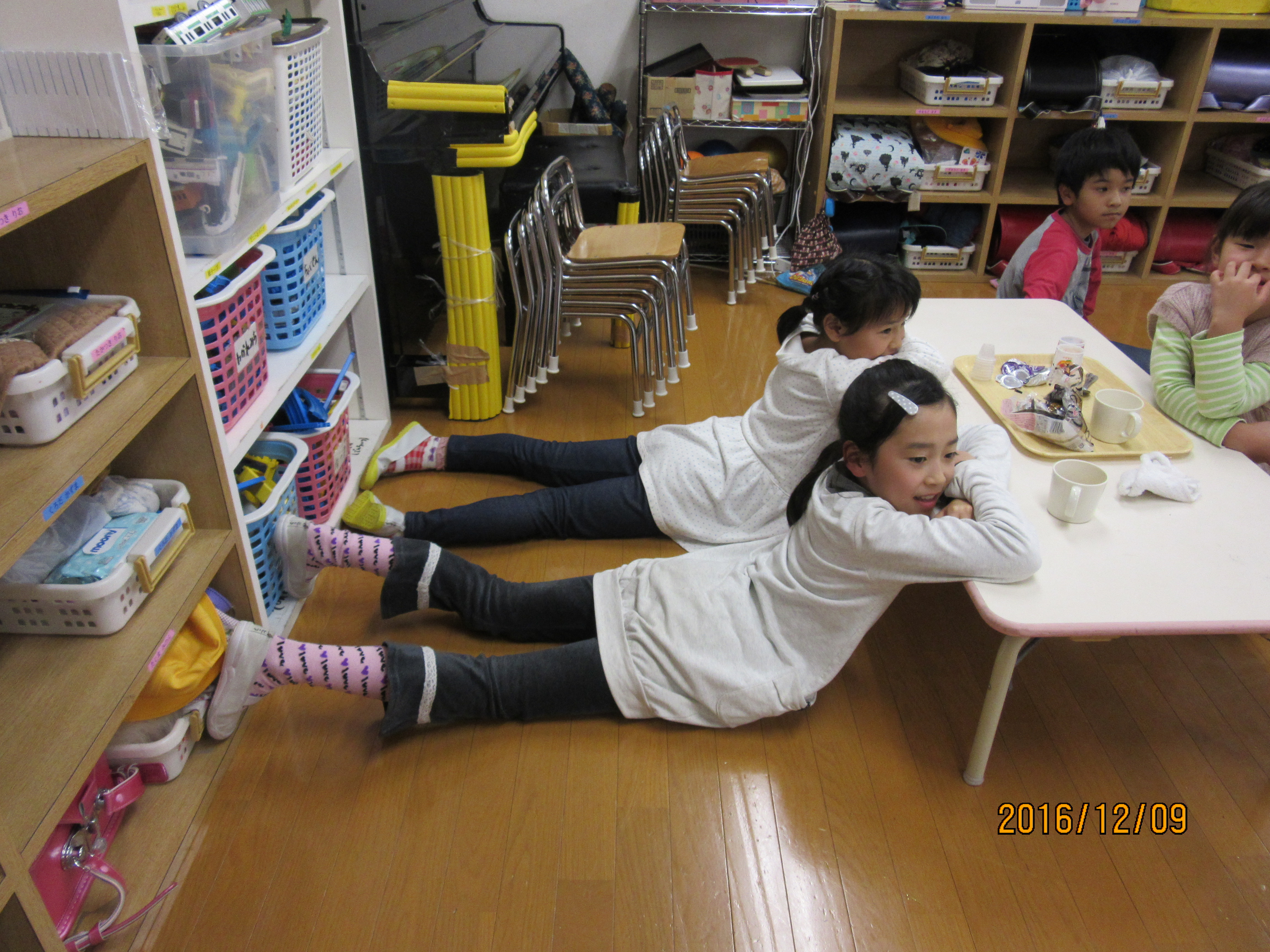 何かがおかしい…!? 真剣に宿題をやってはいるんですよ… いつもおやつを先に食べ終わった子から、宿題が終わってない子は自主的に静か部屋にて宿題をするんです。 そんな保育風景を撮ろうとしたら、何か異変に気付きました…! 一見、真面目に宿題をやっているように見えますが… 何かがおかしい…(゜◇゜;) カメラの撮影を終わると、きちんと座って黙々と宿題をやり続ける子ども達でした(´∀`;) ちょっと奇妙な光景でした(-ω-;) でも体勢に異変が… おやつの方にカメラを向けるとこちらにも感染が広まってます…!! もうカメラ目線で笑っちゃってる…(笑)