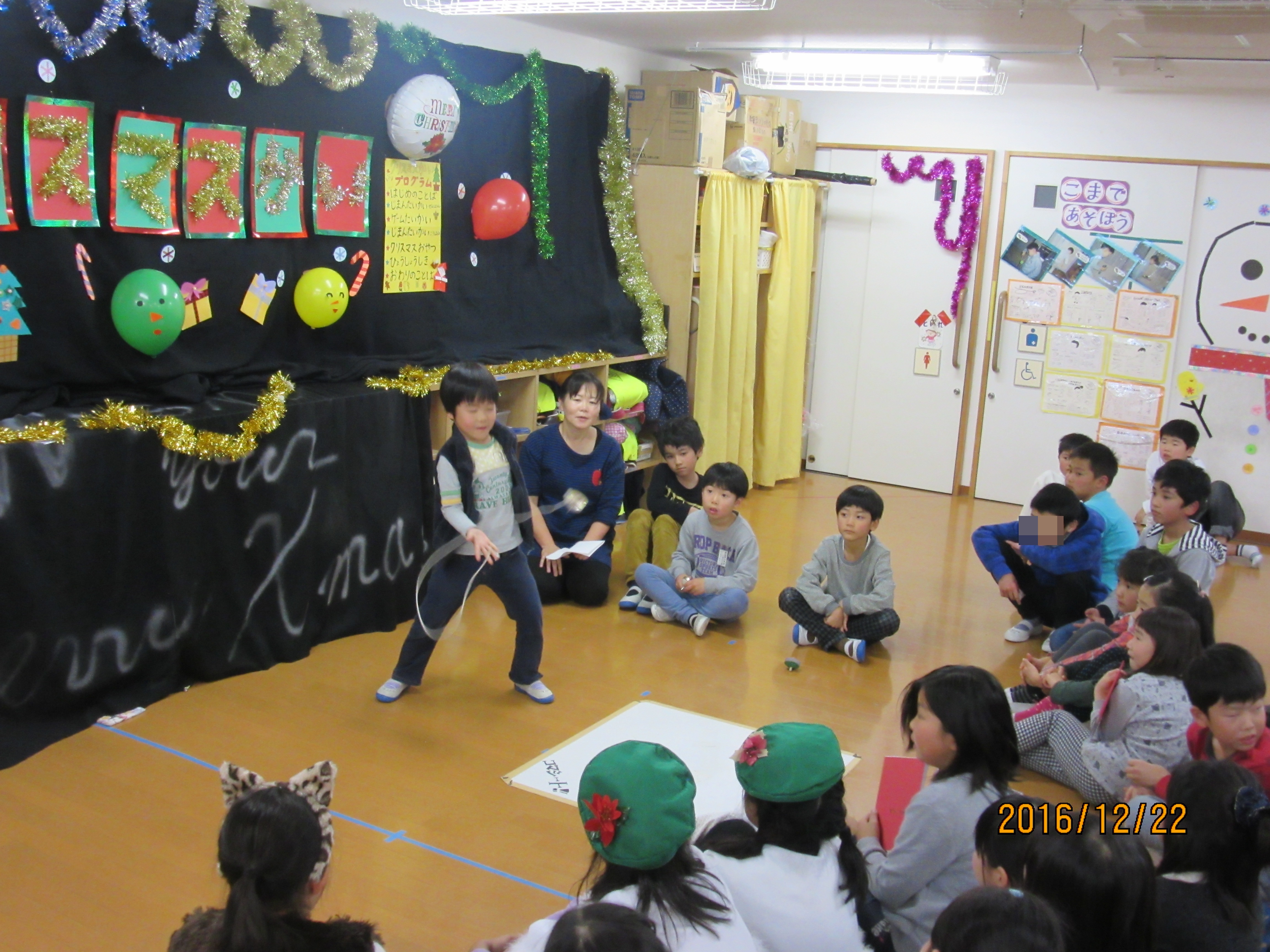今年のクリスマス会のメインイベントは子ども達が自分達で志願してステージ内容を決めるじまん大会!何を見せても良し!とにかく自分が自信を持って披露できるものならなんでもいいのがじまん大会の条件です(´▽`)予想以上にエントリーが多くてびっくり!ここまで意欲的に取り組んでくれるとは嬉しいですね♪