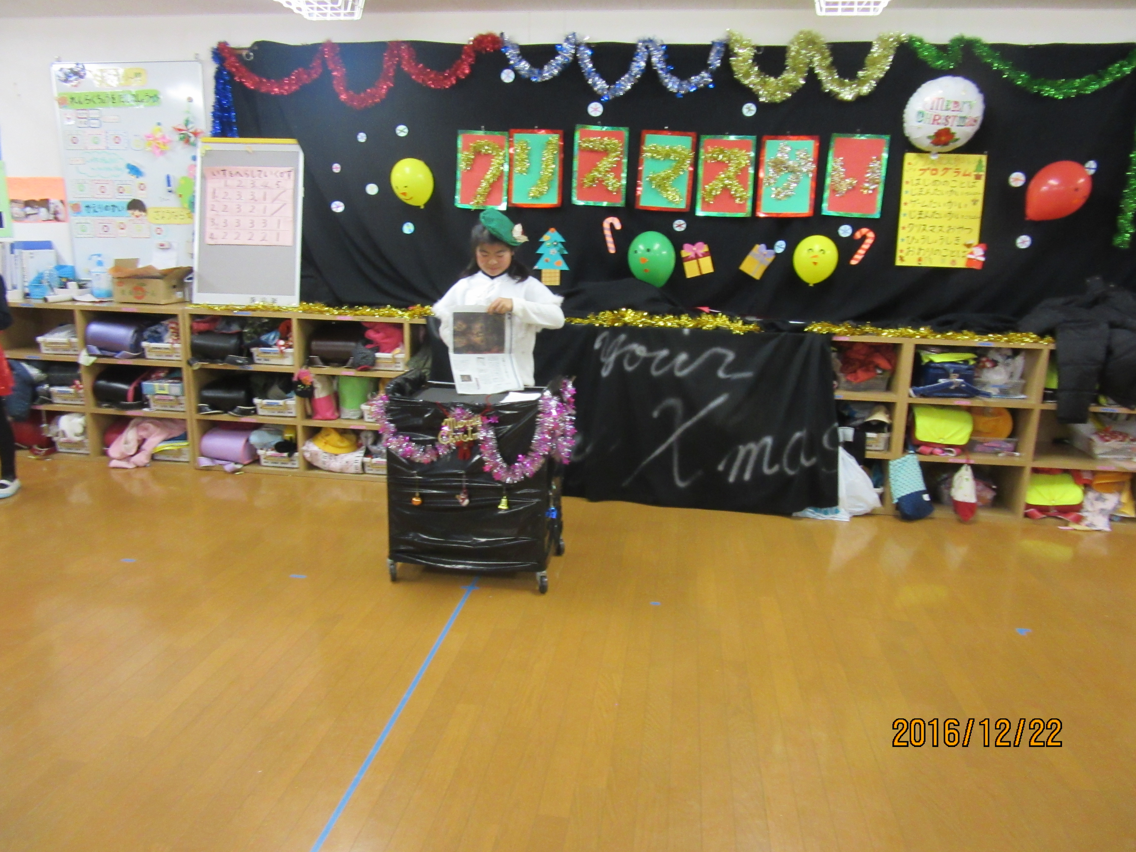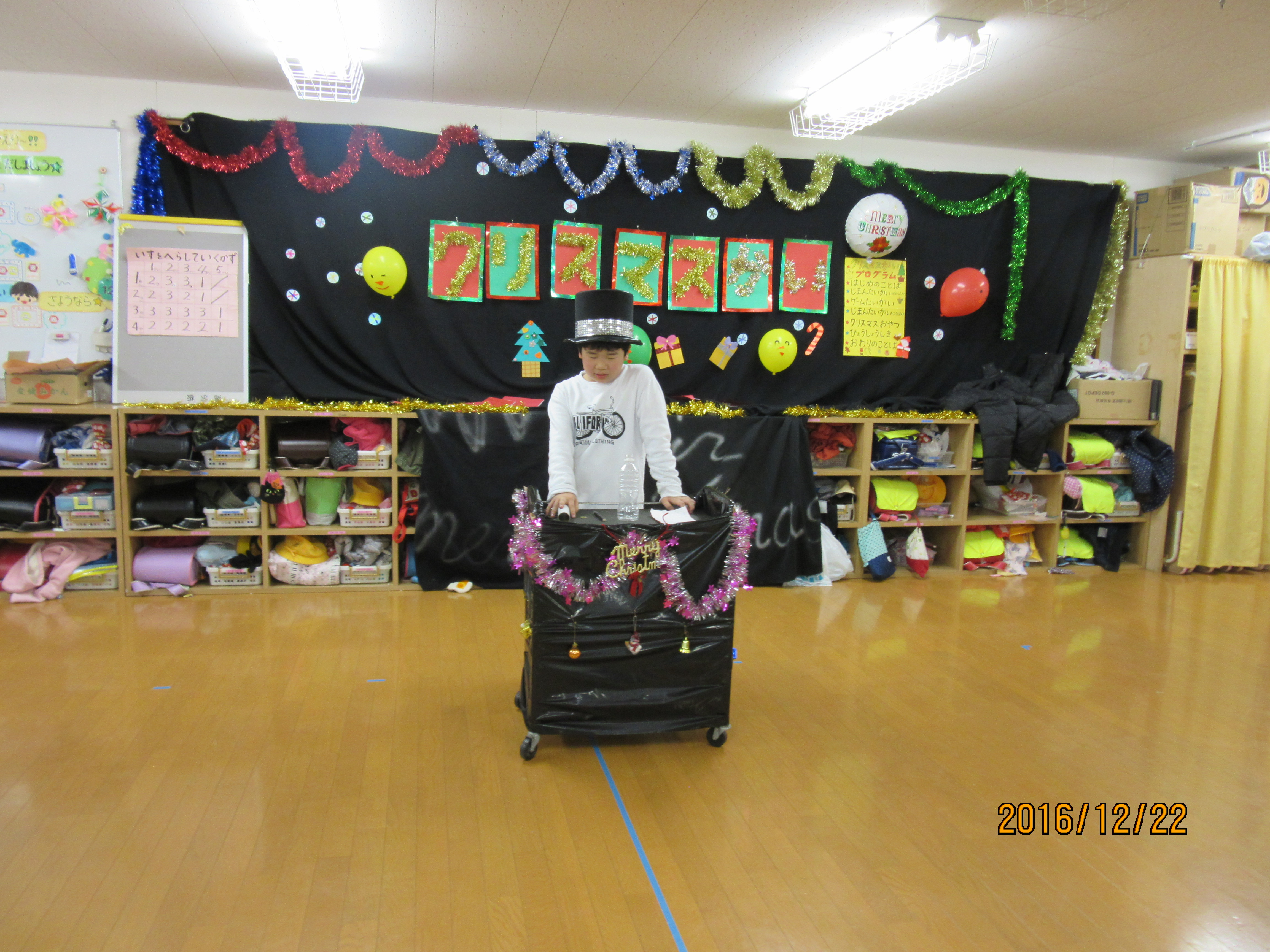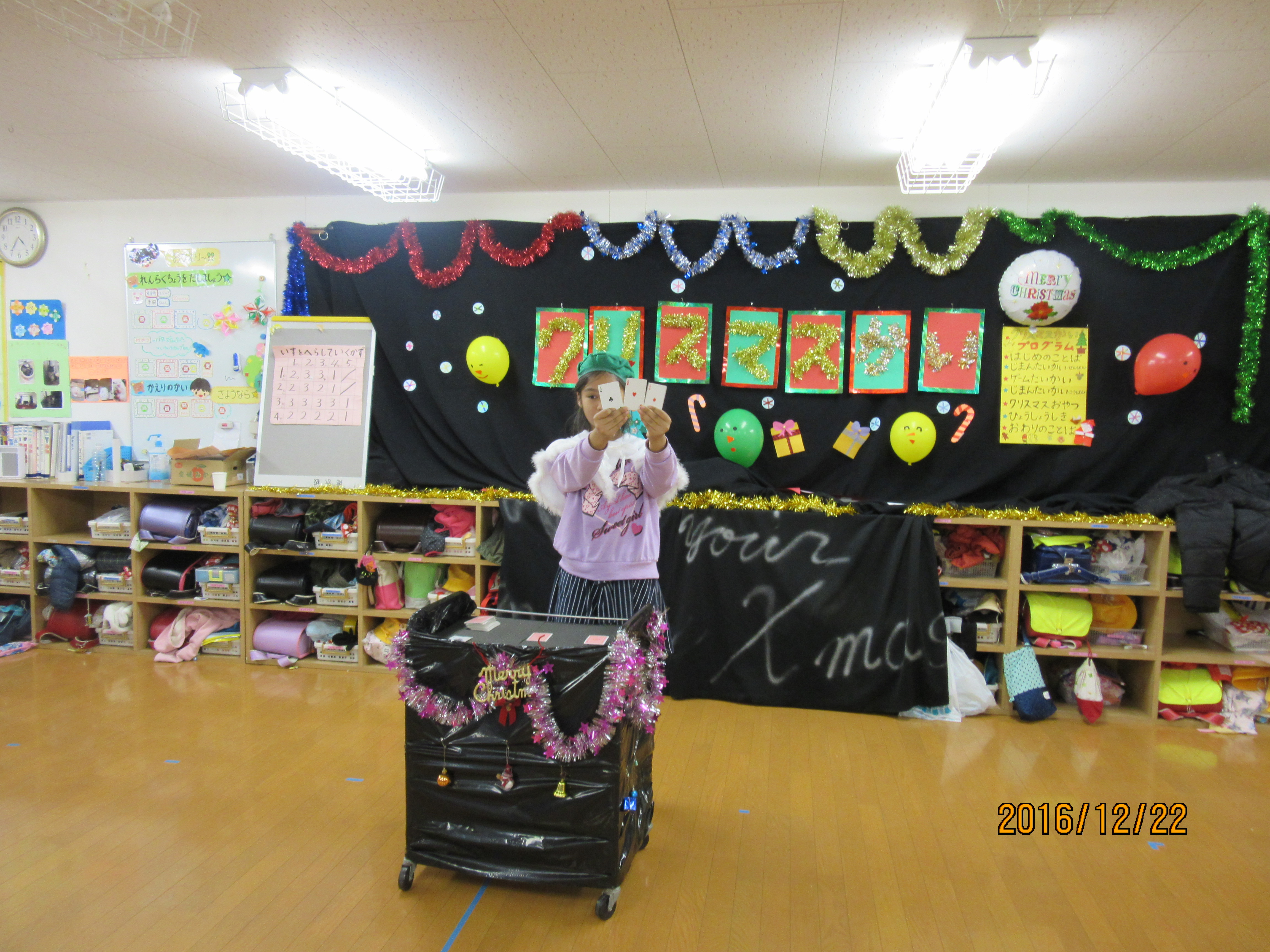 最後は4年生によるマジックショー!! トップバッターは、ビンを貫通するペンマジック! 4年生で組まれたマジックショーの始まりです! さすが4年生!皆が「え?なんで?」「うそでしょ?」という反応を見せるほどの高度なマジックを見せてくれました★そんな4年生の姿を見て、マジックを来年やりたいと憧れる子も出てきて…( ´艸`) これぞ、異年齢たる学童の姿!と職員満足です(*゜ー゜) とにかくすごくかっこよかったです! 続いては、王道トランプマジック! 難易度の高いマジック、水と新聞紙マジック! 皆に近づいて披露した5円玉マジック! トリはチチンプイプイ〜と皆で力を合わせて行ったマジック!