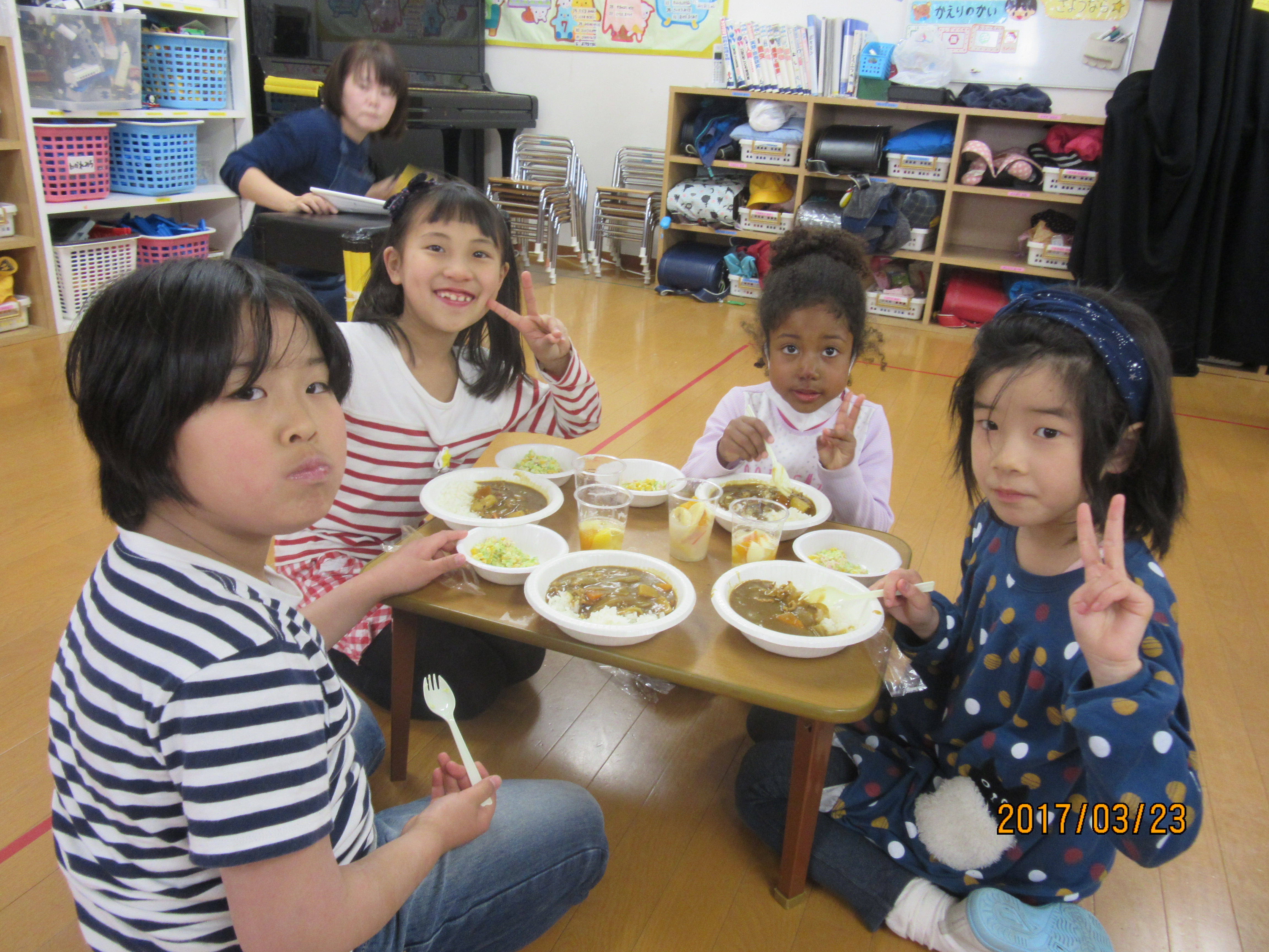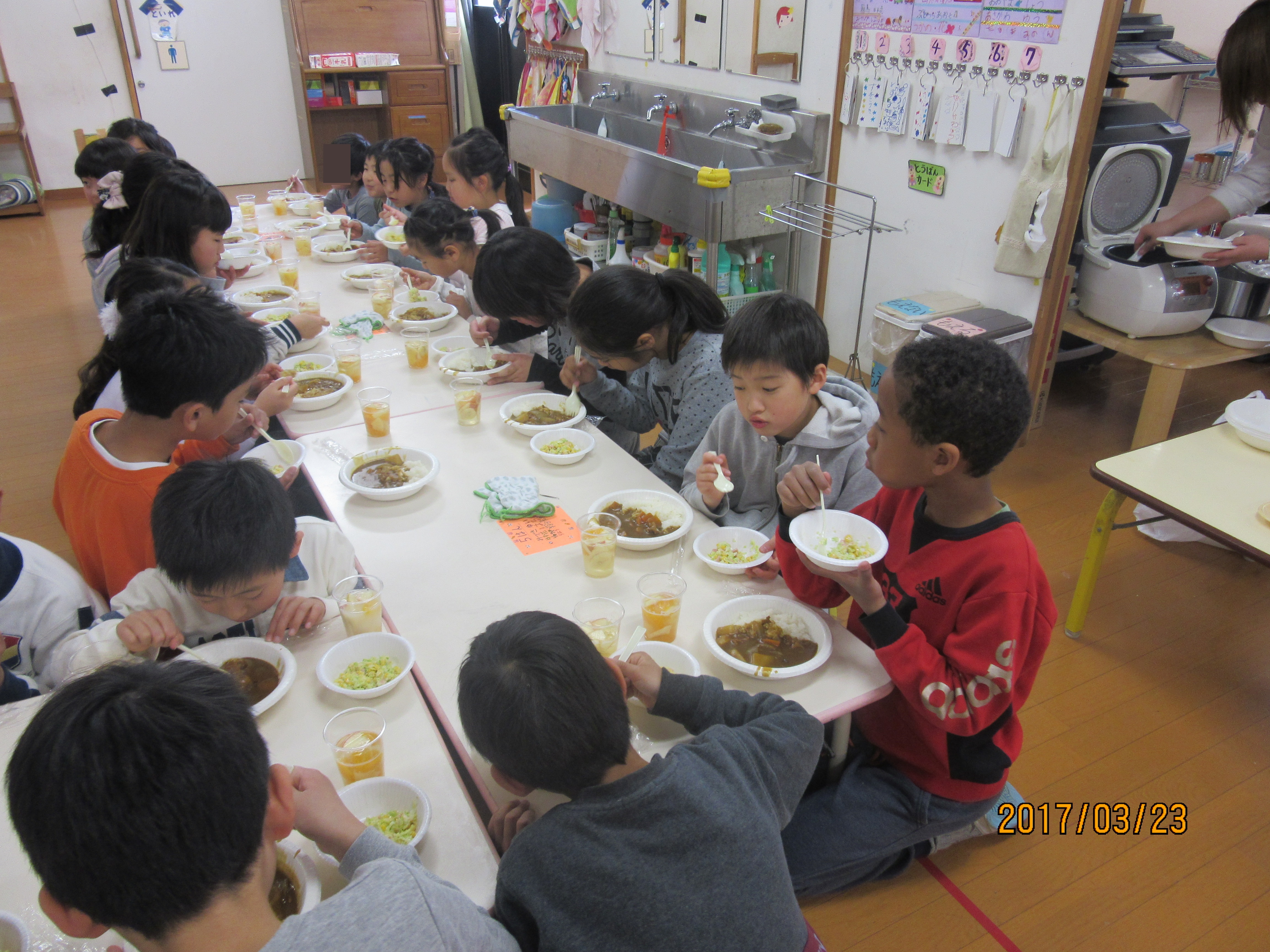 修了式が終わり、子ども達が学童に帰宅すると、カレーのいい匂い♪