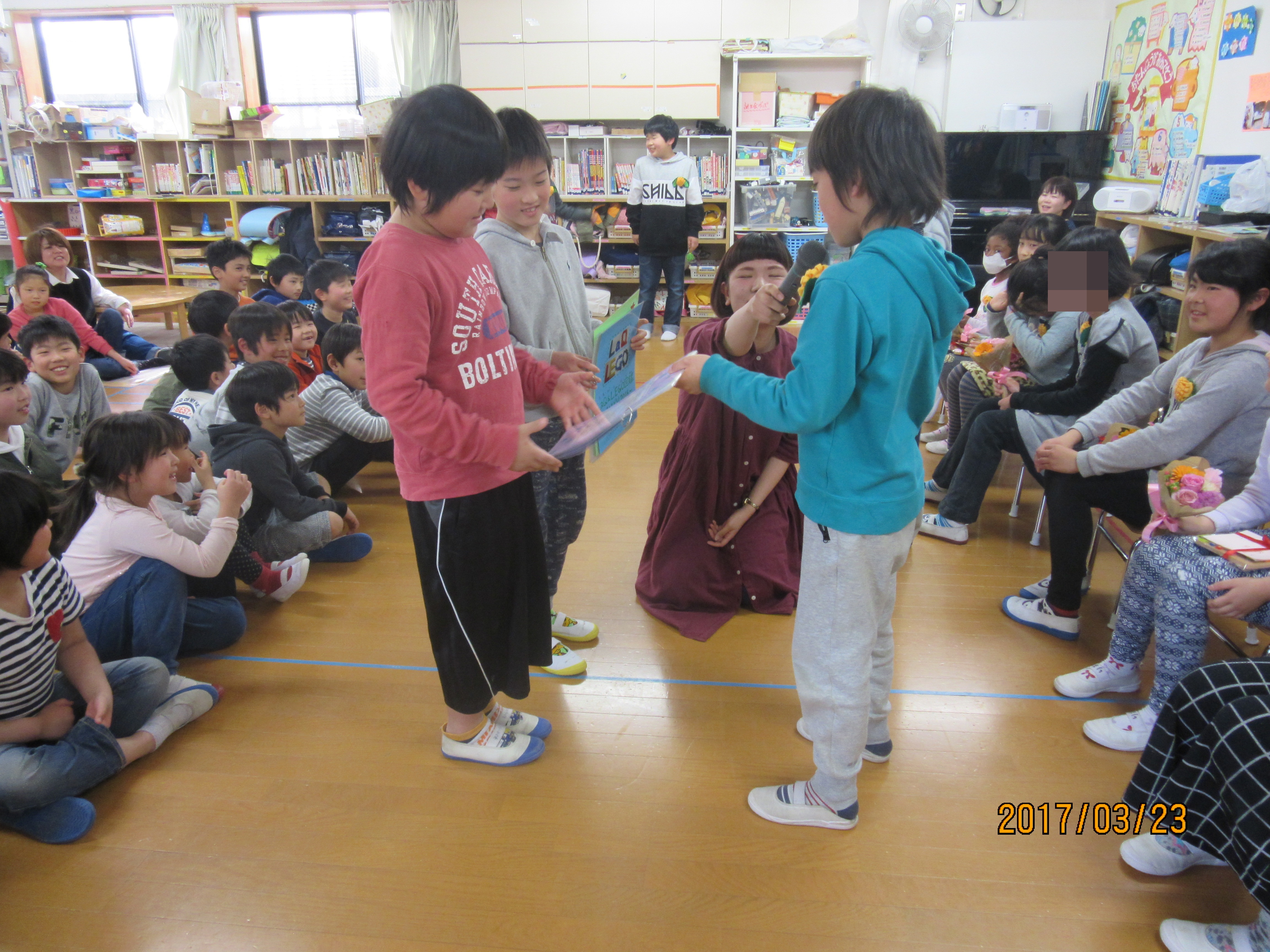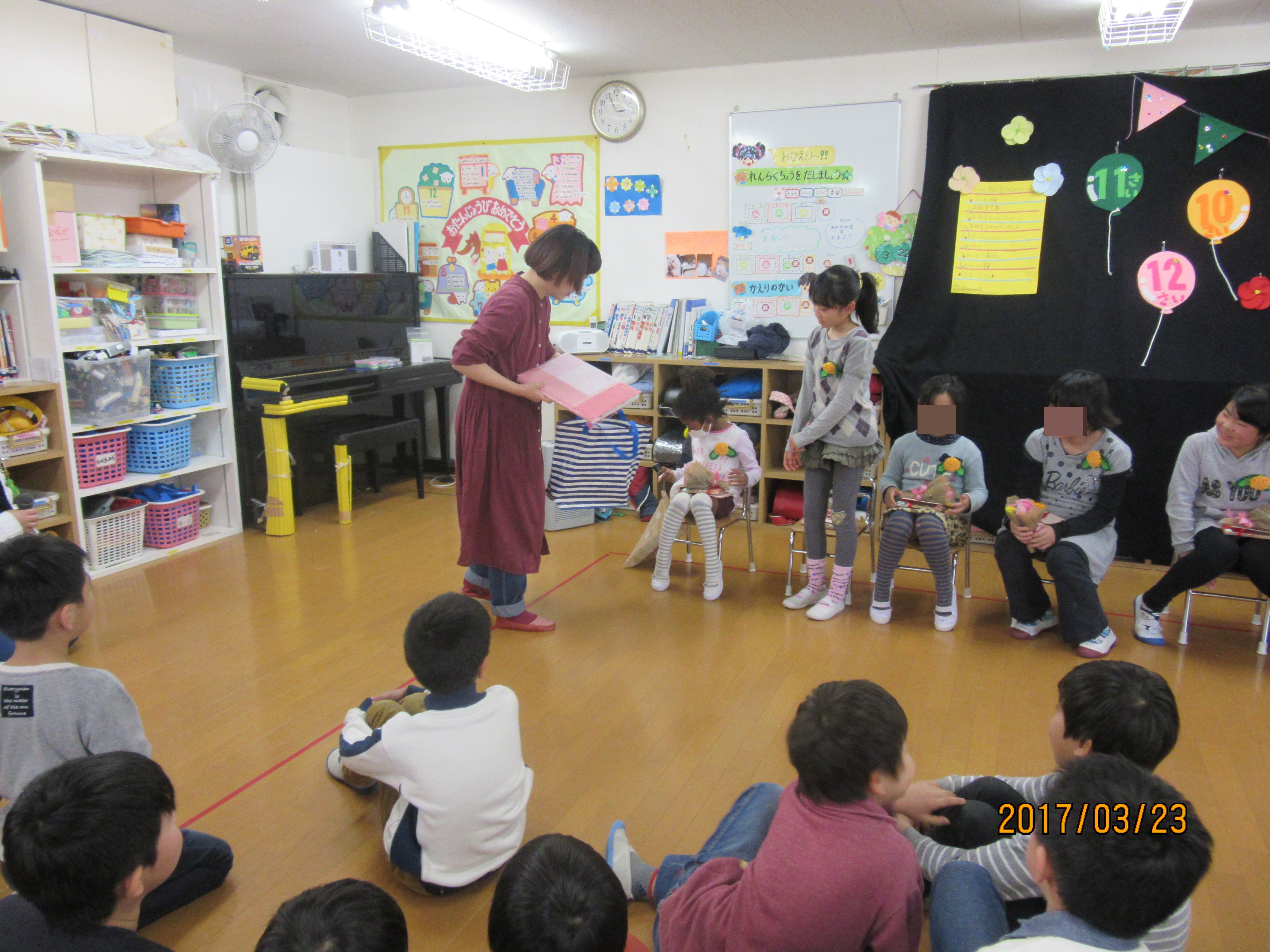 そして、最後は先生と父母会からのプレゼントということで、学童での思い出がぎっしり詰まったアルバムを贈呈!我慢しきれず、その場でチラチラと中身を見て、思い出を振り返っている子もいました(o^―^o)