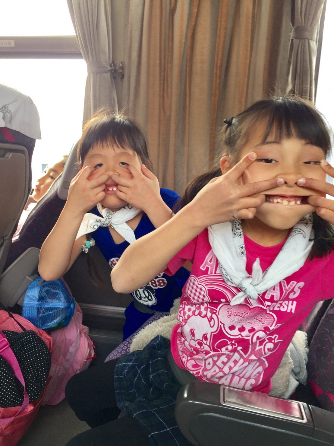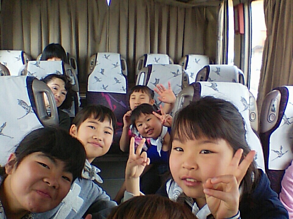 お別れ遠足② バスの中で記念写真♪ 今回は、 バスの様子(´▽`) バスの中でも子ども達にとっては素敵な遊び場★ すごいのをお見せしますよ( ´艸`) 保護者の方、ごめんなさい(笑) 後方変顔隊♪ 前方変顔隊♪ これから遊ぶぞ!!!