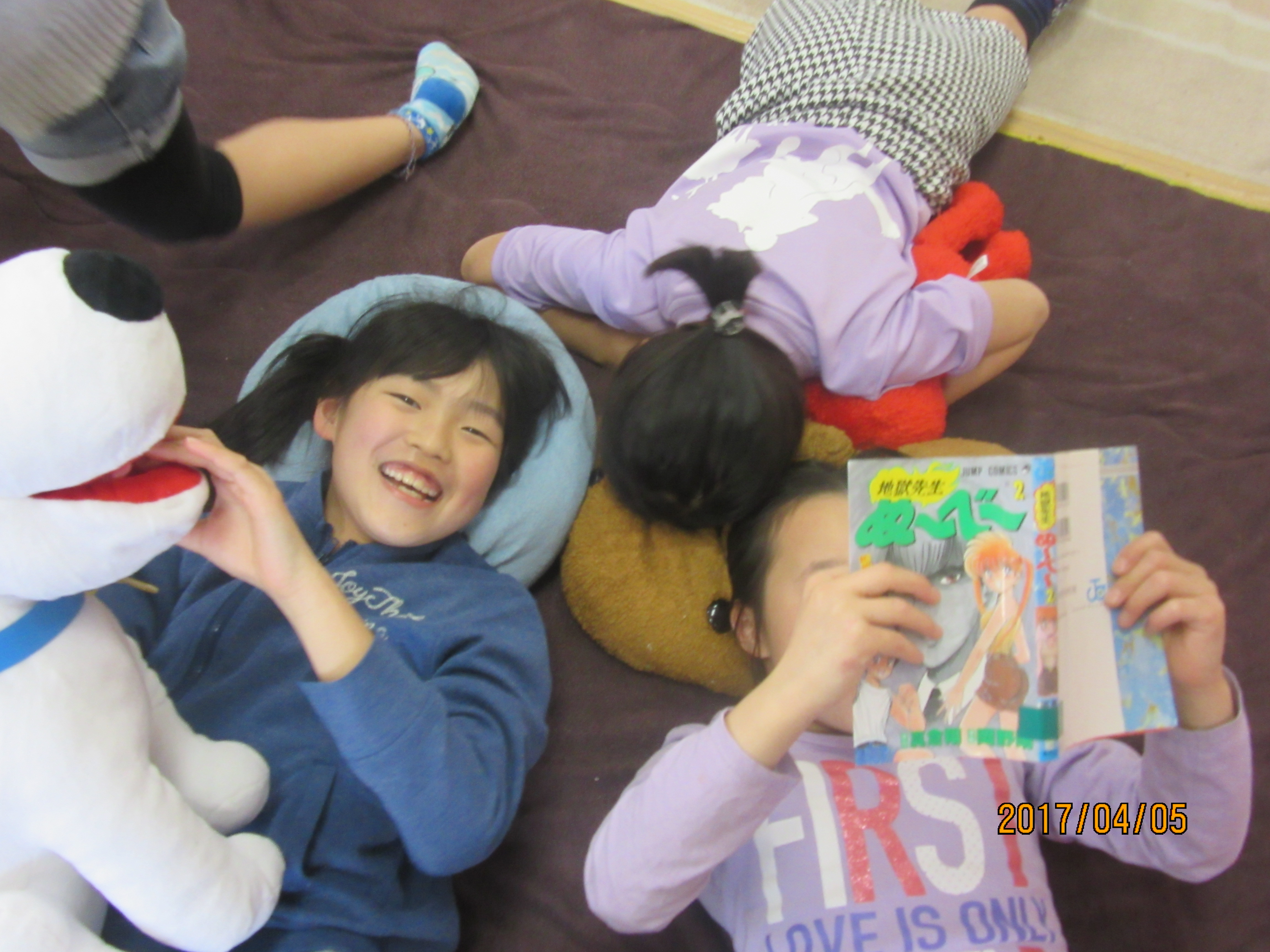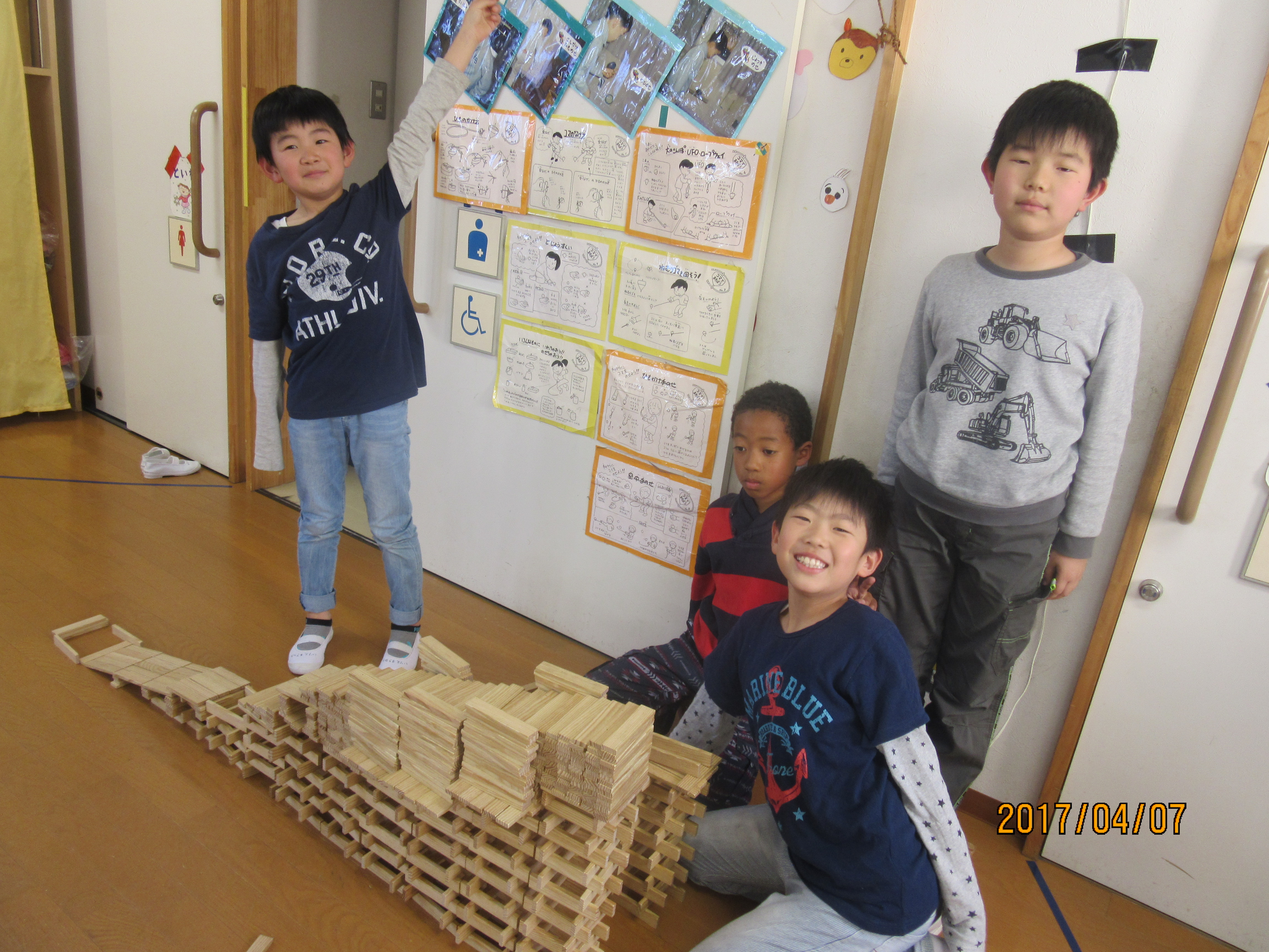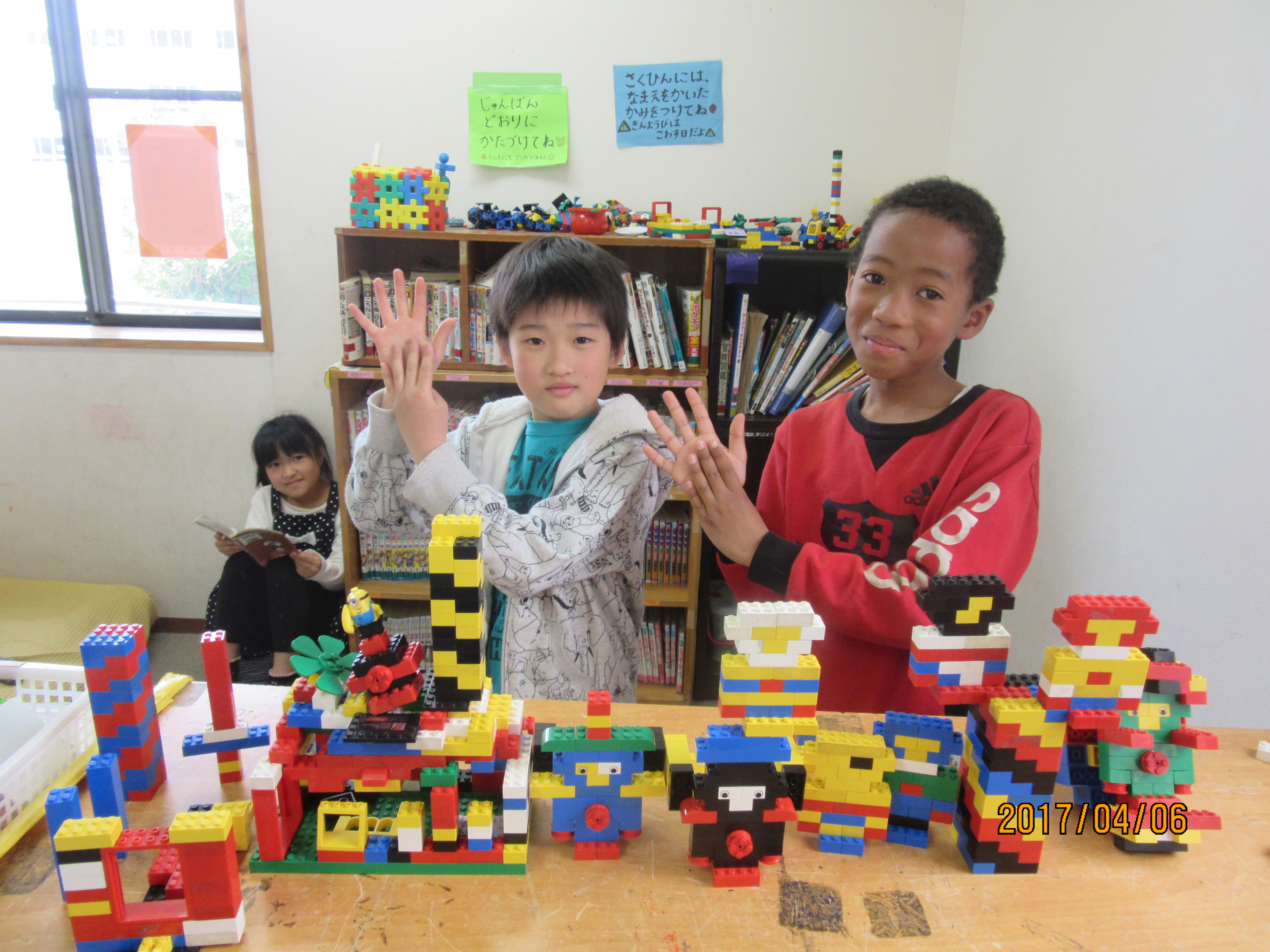 日常♪〜在所生編〜 オセロはものすごく集中します! 学童の遊びになれているベテラン在所生だって、日々新しい遊びや発見をして楽しんでおります★楽しむためのアイデアなら負けません( ´艸`)そしてどんなことにも常に真剣(*゜ー゜)遊んでいるときの集中力はものすごいですよ〜!あとは、ふざけすぎて怒られてめげない精神力は負けませんね(笑) これも真剣…!真剣に遊ぶっていいですね★ ゴロゴロしながらじゃれあってます♪まんが読んだり人形で遊んだり…自由です★ 完成した自信作は毎回写真を撮ります((*´∀`*)) 2人で沢山作品を作りました!見てください、この満足な表情♪