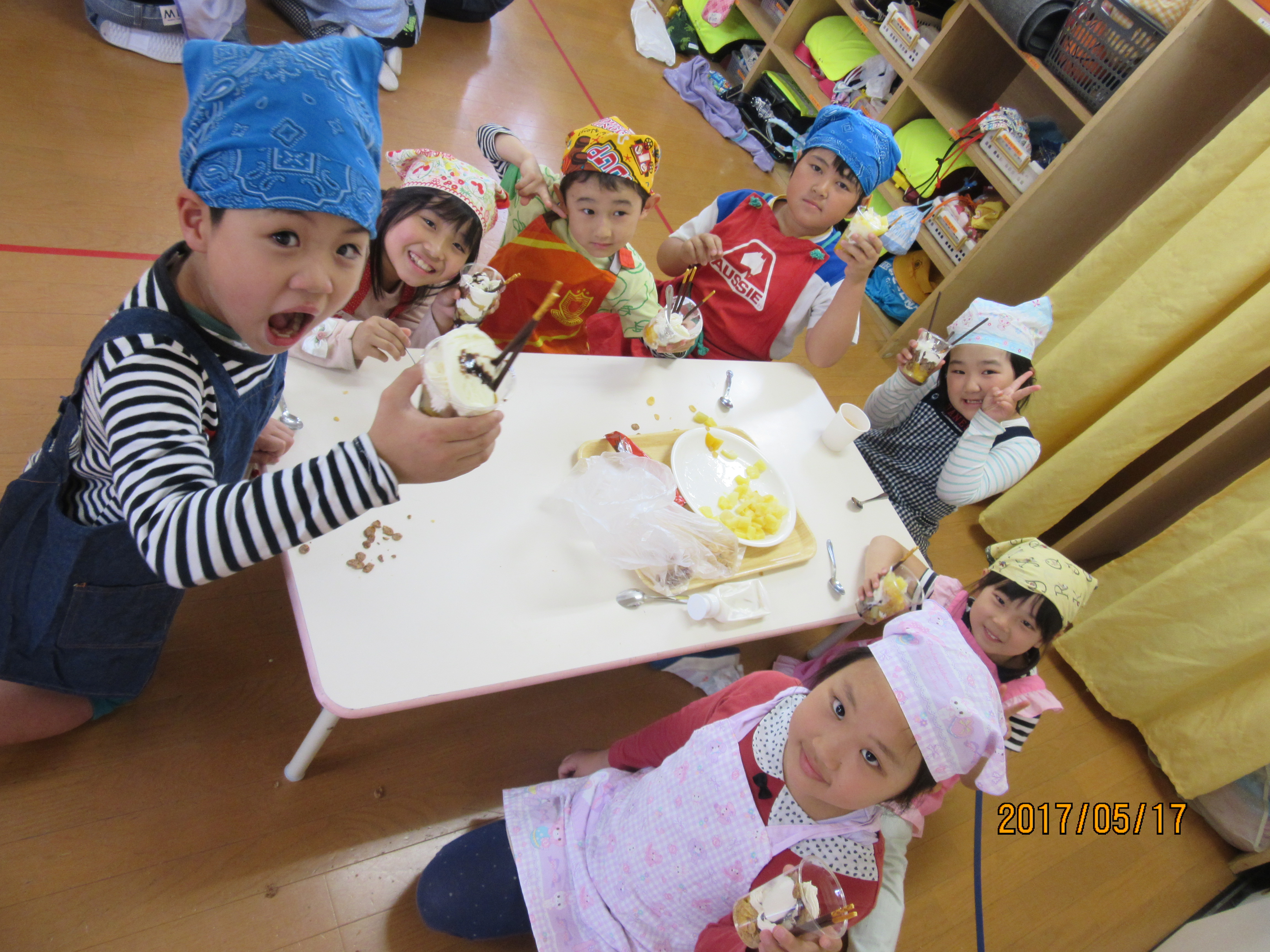 最初から包丁などの刃物は使えないので、今回は自分達で容器に詰め込んでオリジナルのパフェを作ります★