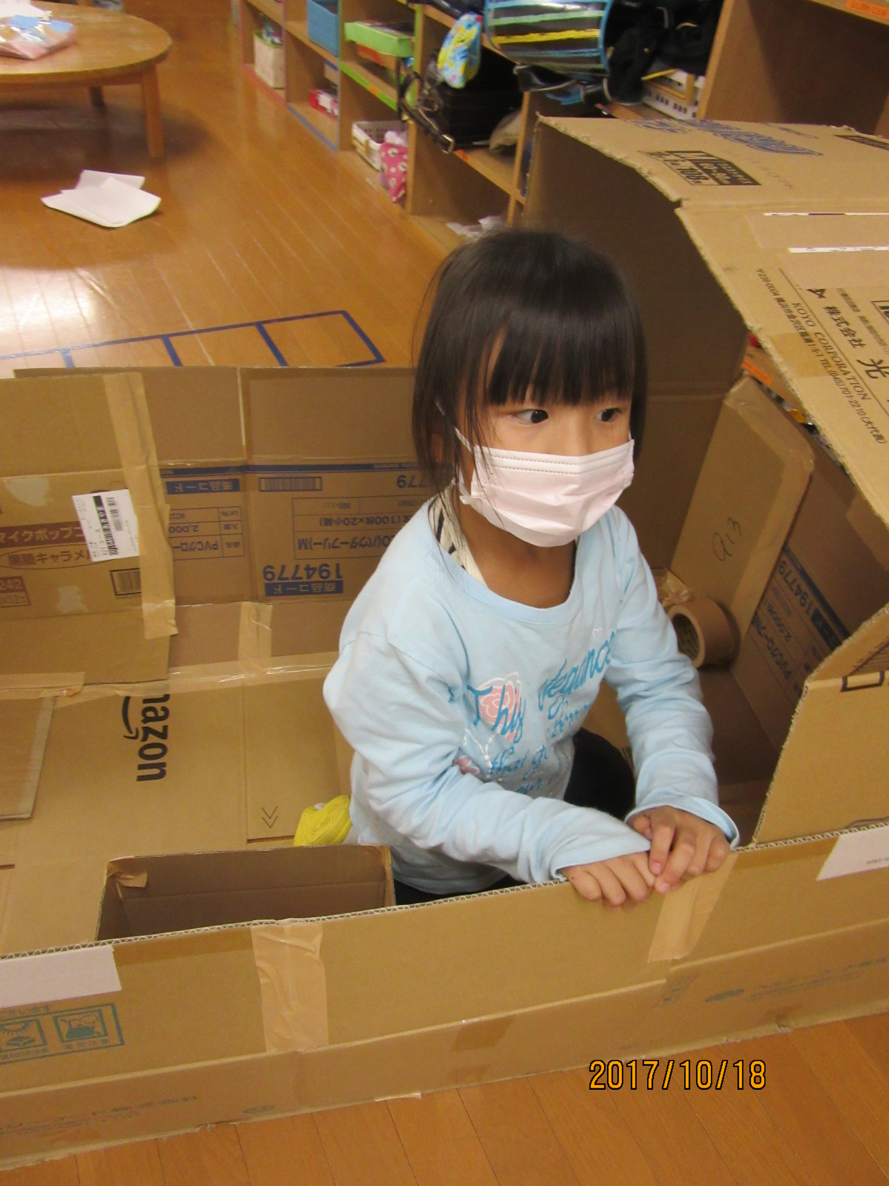 去年は屋根もダンボールで作って、重くて落ちてきてしまったことを反省し、今年は軽い素材のビニールを屋根代わりにする子が多かったです!