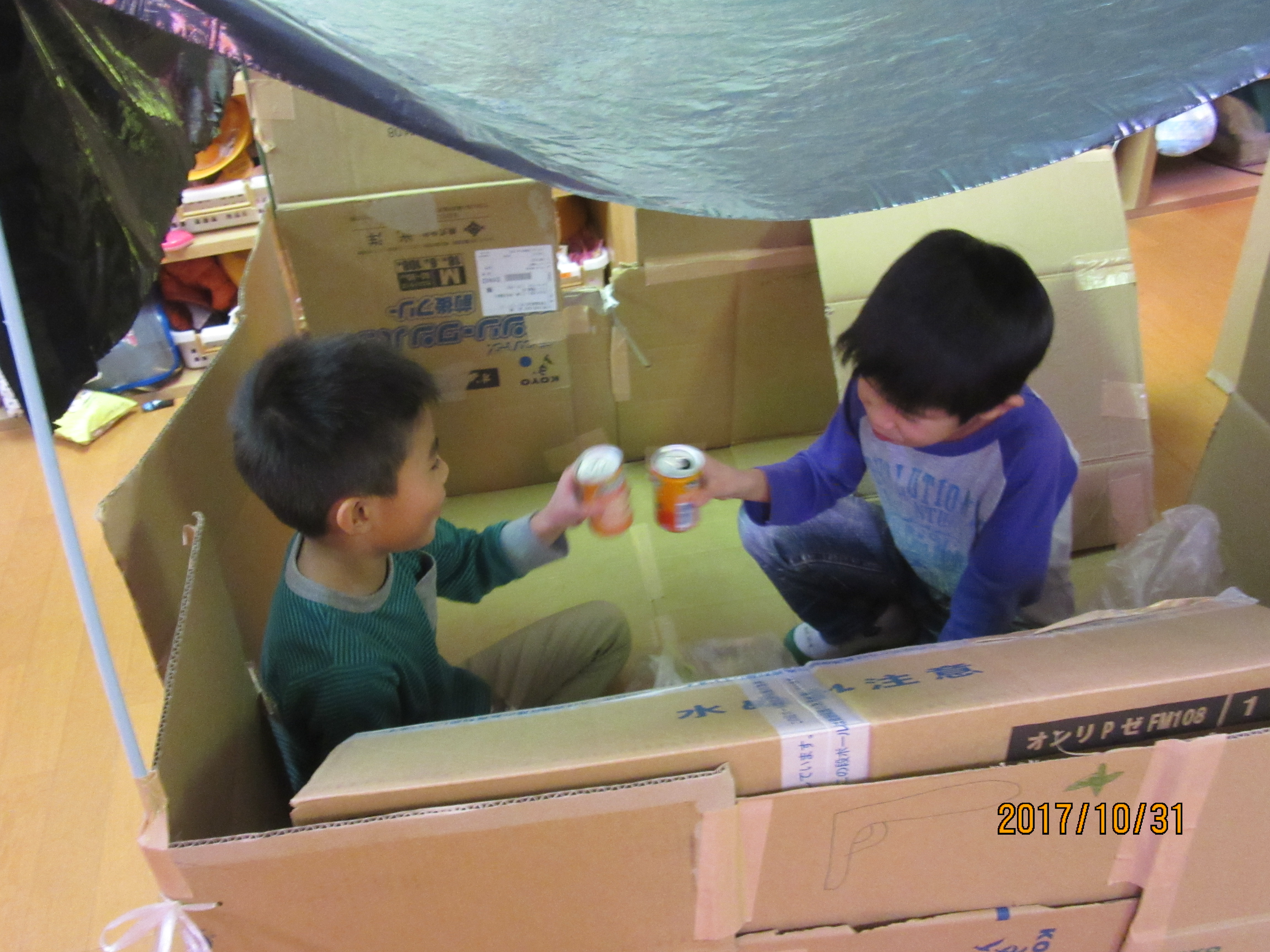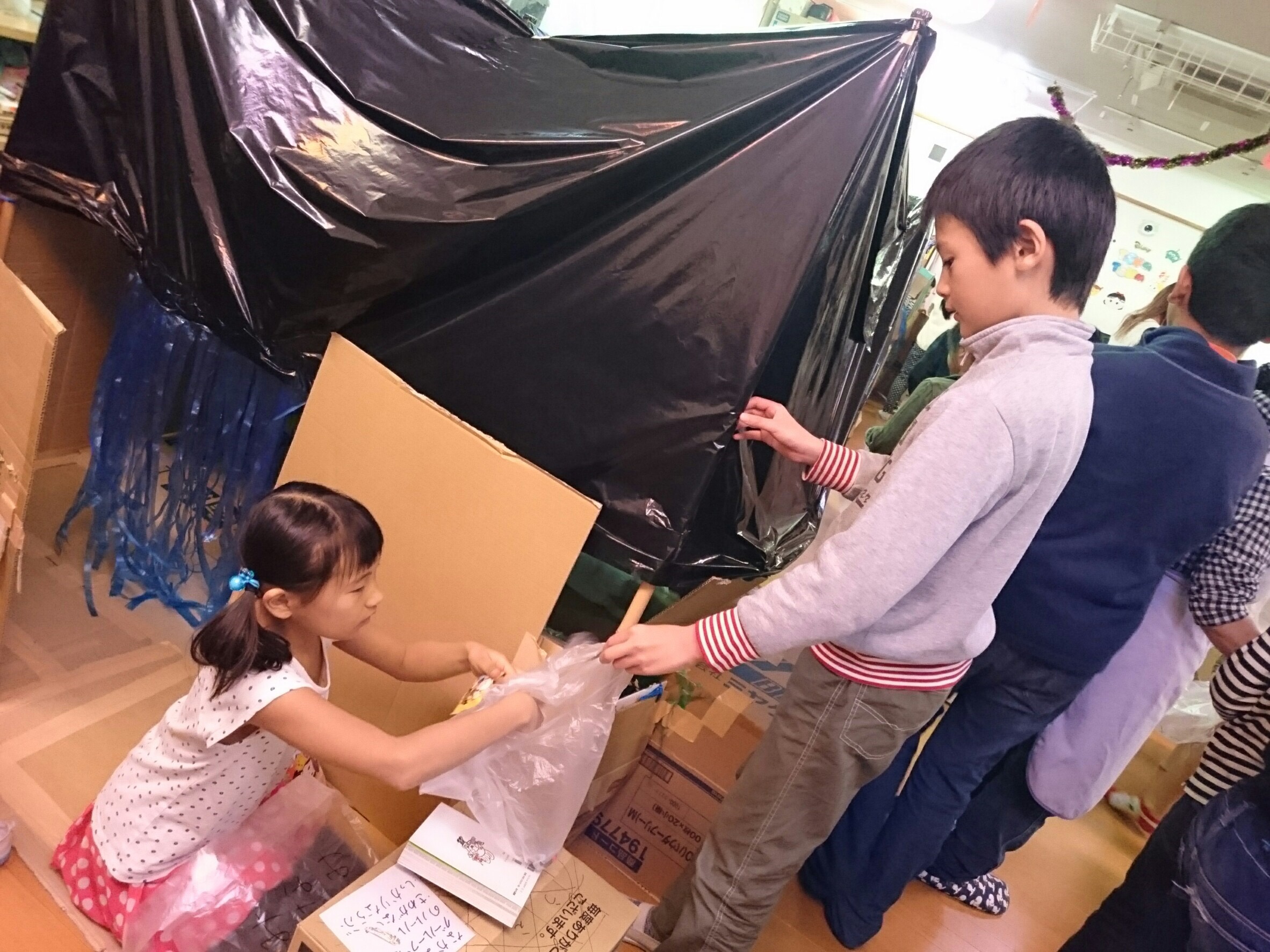 今年もダンボールハウスを利用して、「ひよどりタウン」を作りました♪