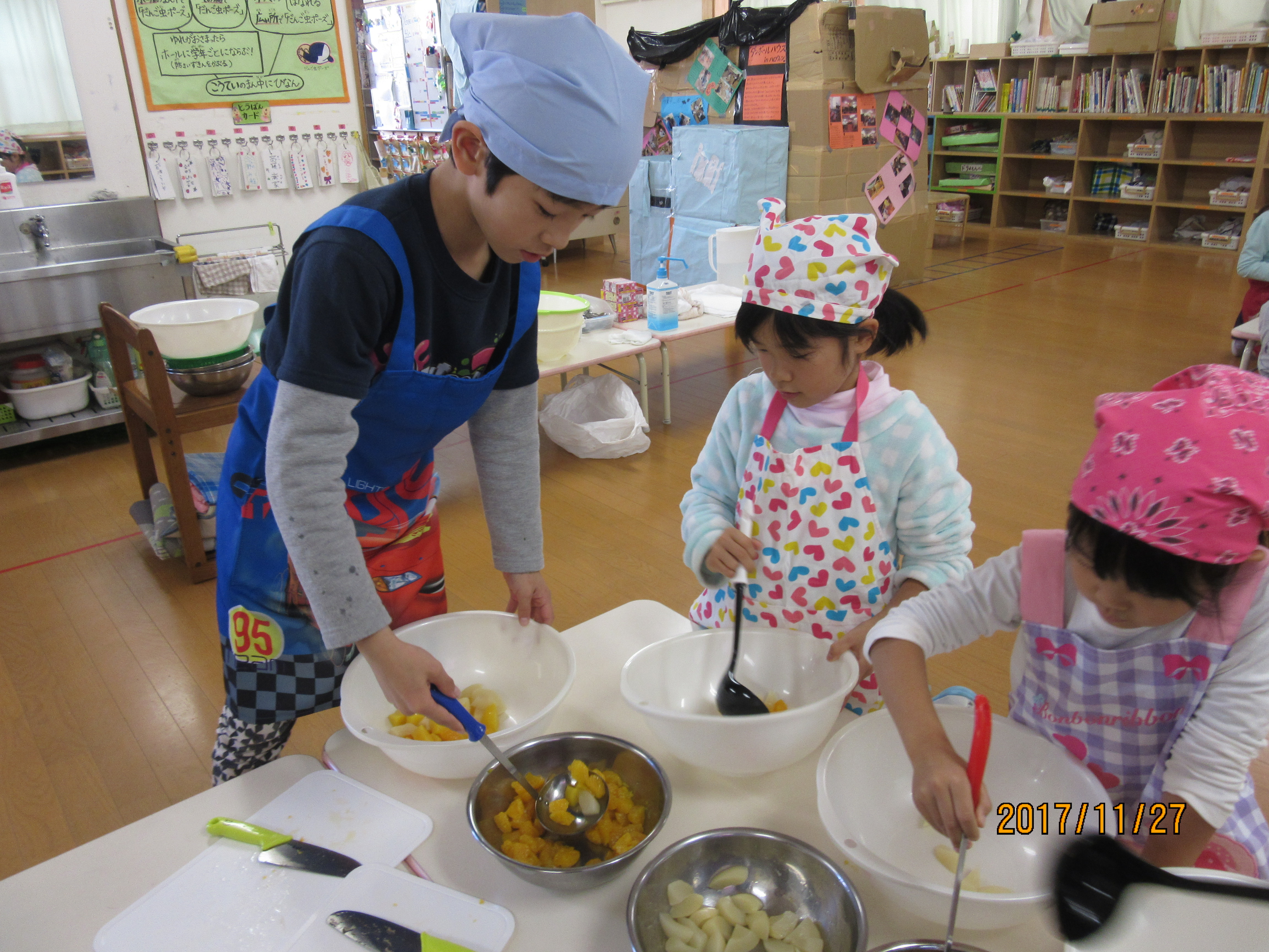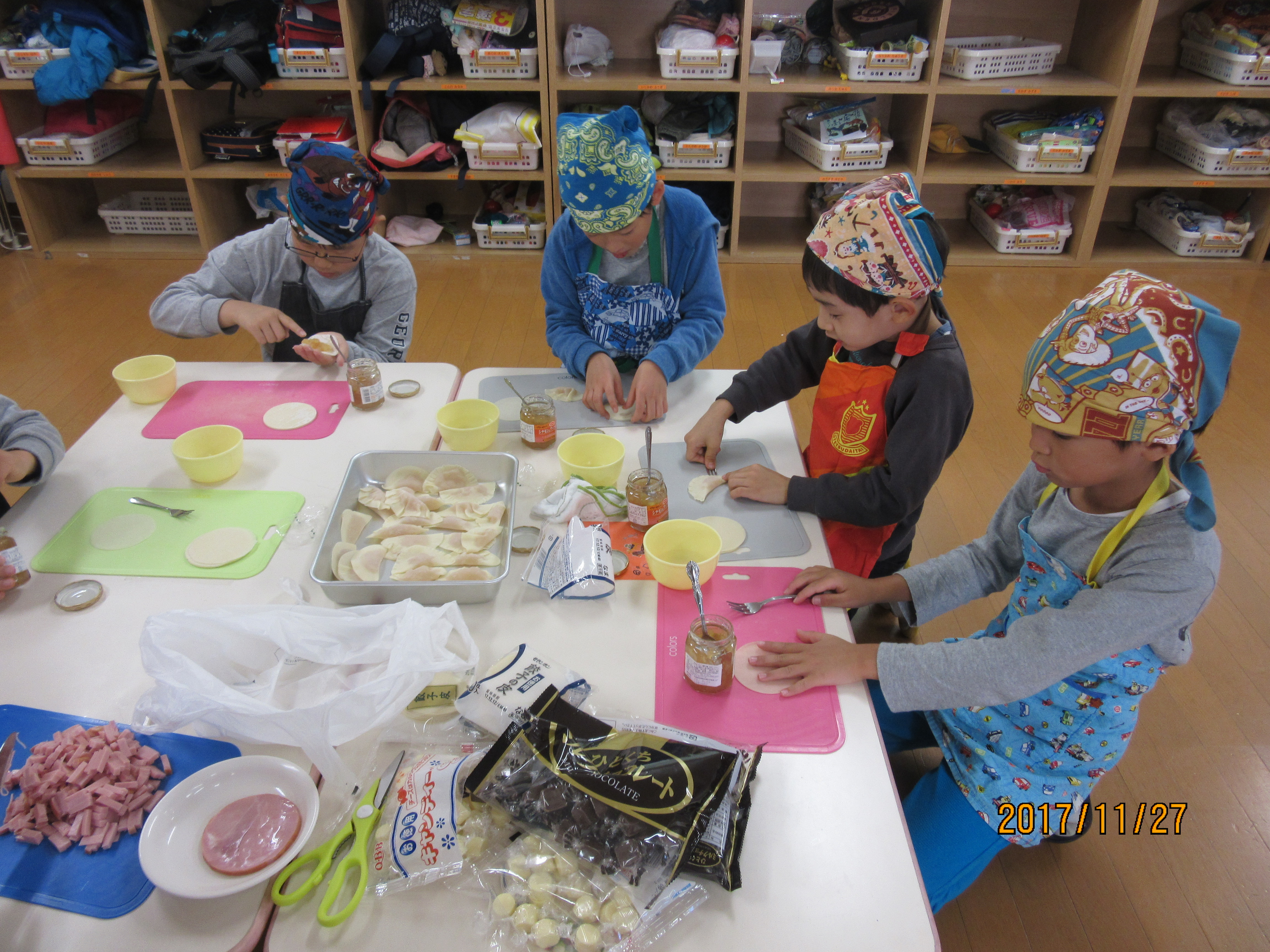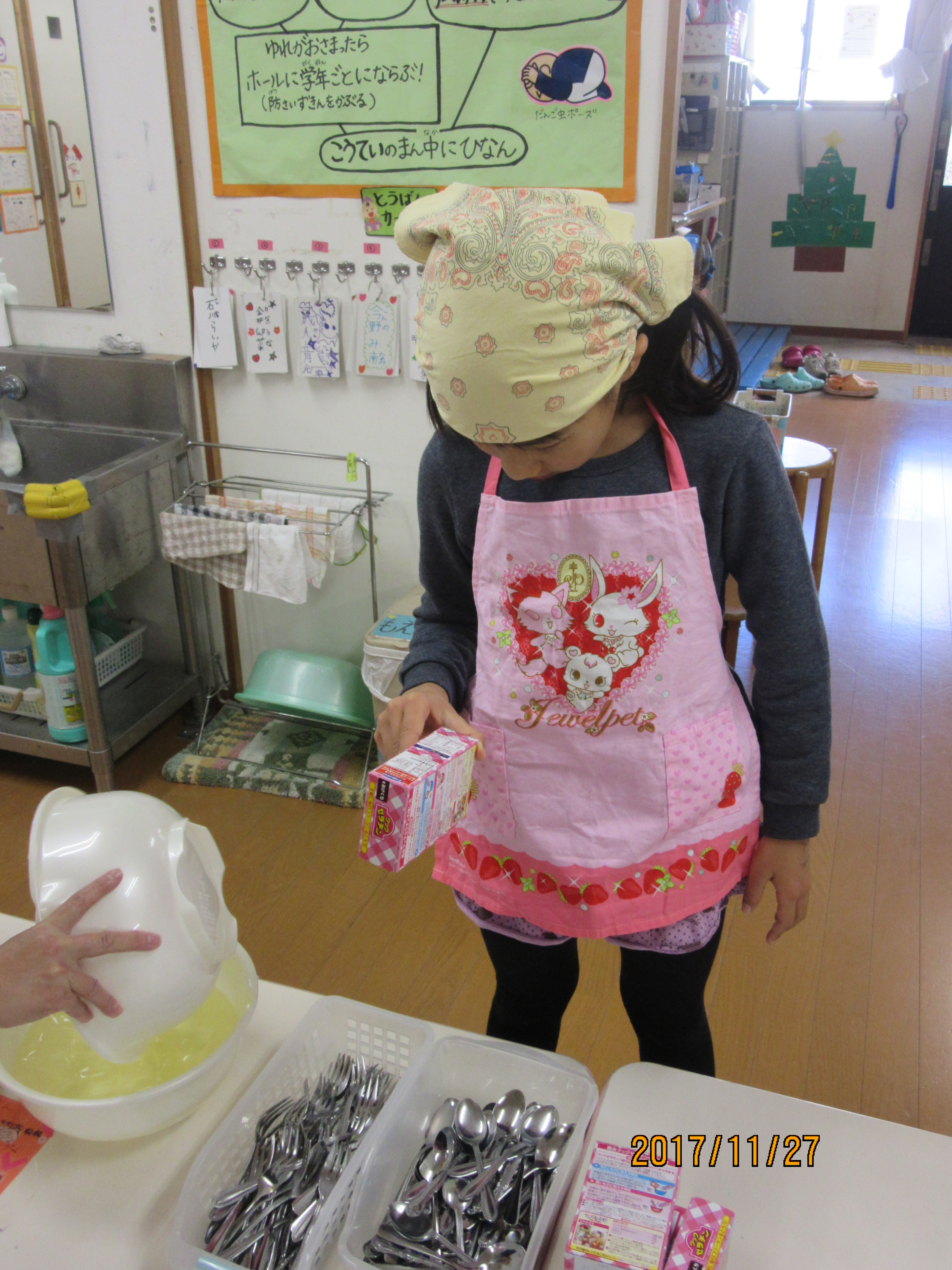 手作りおやつをして、今日学校がある子達にふるまうことに((*´∀`*))
