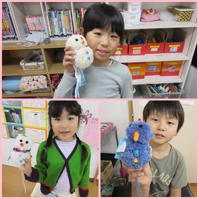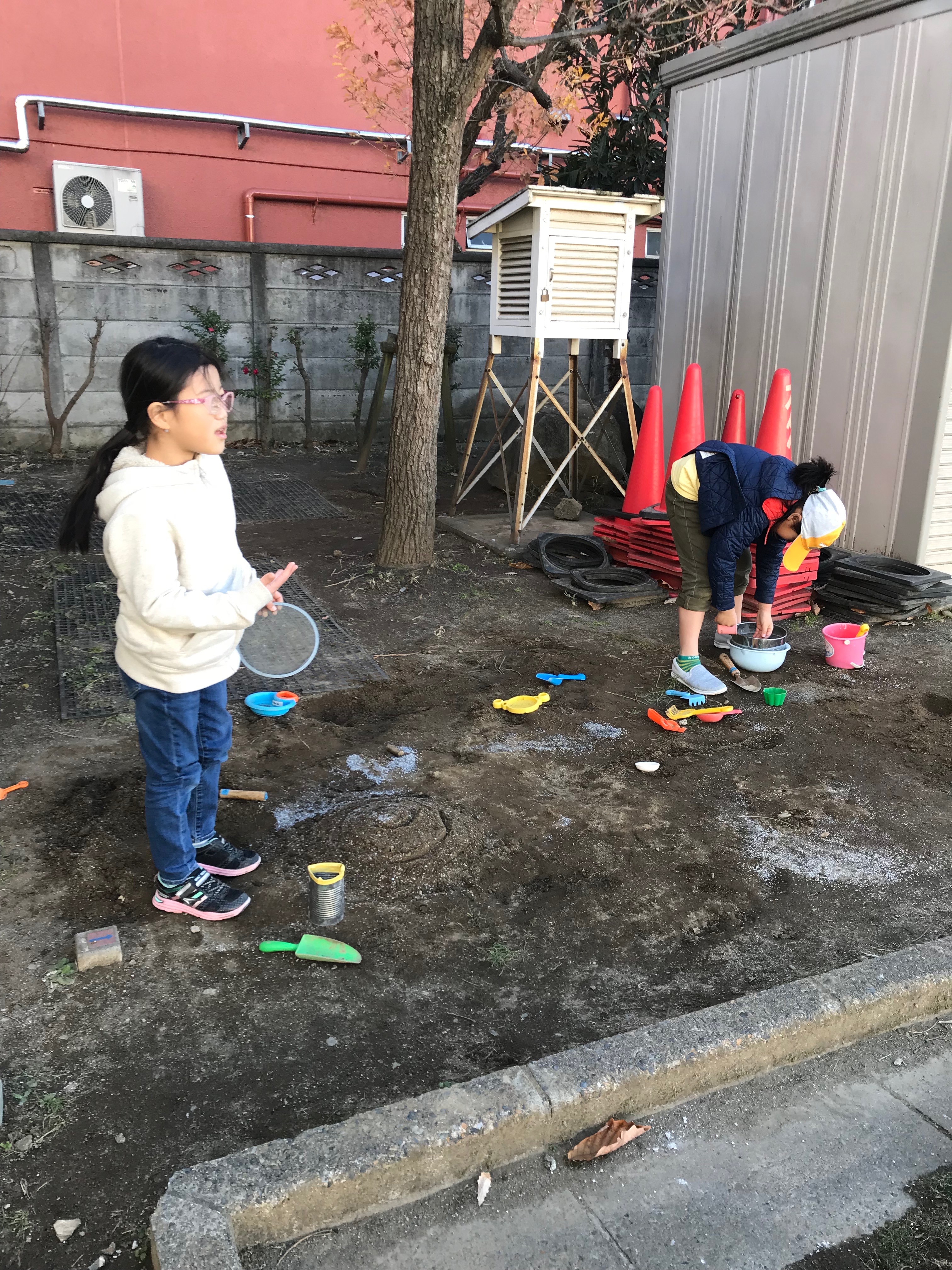 12月の遊び★ 砂遊び★手が冷たくてもお構いなし! 今回は冬休みの遊びのご紹介♪ 子どもはどんなに寒くても外で遊ぶのが大好きです! そんな中、ホットカーペットの上から動こうとしない子も居たりして 冬は特に外派と中派に大きく分かれますね〜★ では外派の過ごし方と中派の過ごし方を写真でご紹介(o^―^o) オールシーズン人気の一輪車♪ 雪ダルマ作り♪ 暖かいカーペットの上でのんびり工作♪