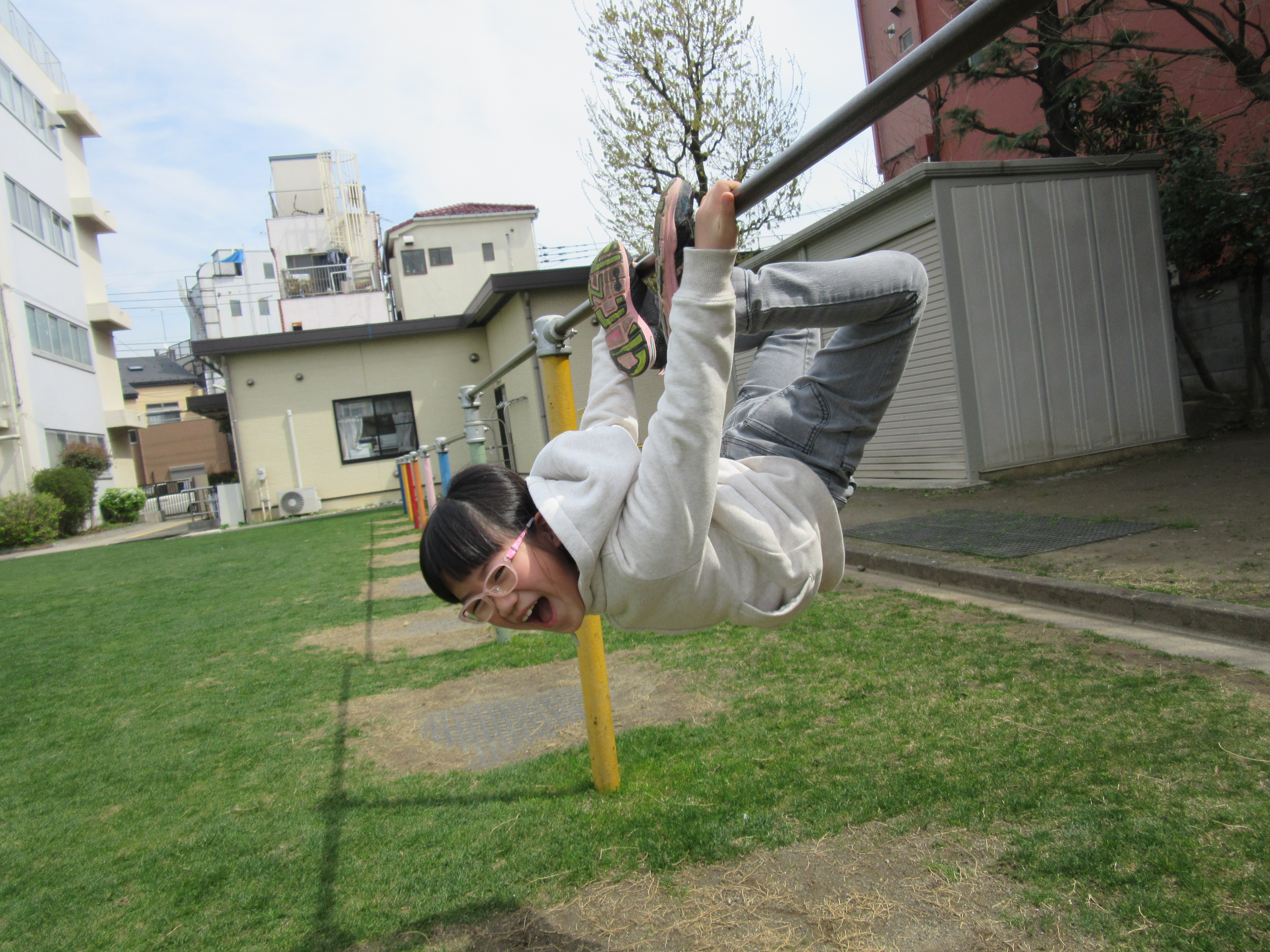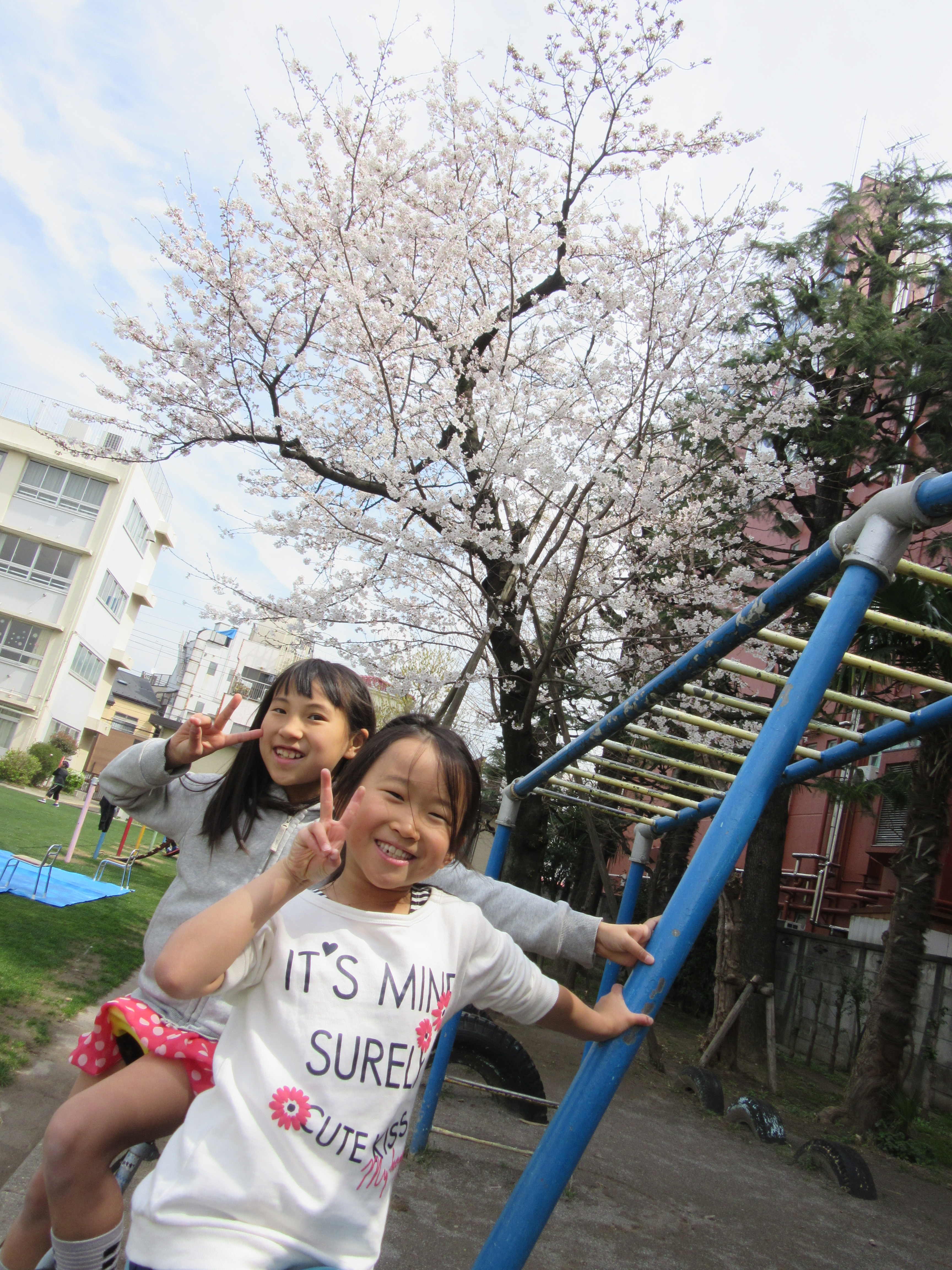 3月の遊び♪〜外編〜 暖かくなってきて、野球をする男の子たちが多くなりました♪ 桜をバックに記念撮影♪美女と桜、絵になりますね♡ タイヤ遊び♪すんごく楽しいのが伝わります(笑) ひよどりで一番鉄棒で色々なことができる子です♪ 桜が綺麗だったので、急遽お花見しながらお昼ご飯♡すごく気持ちよかったです♪