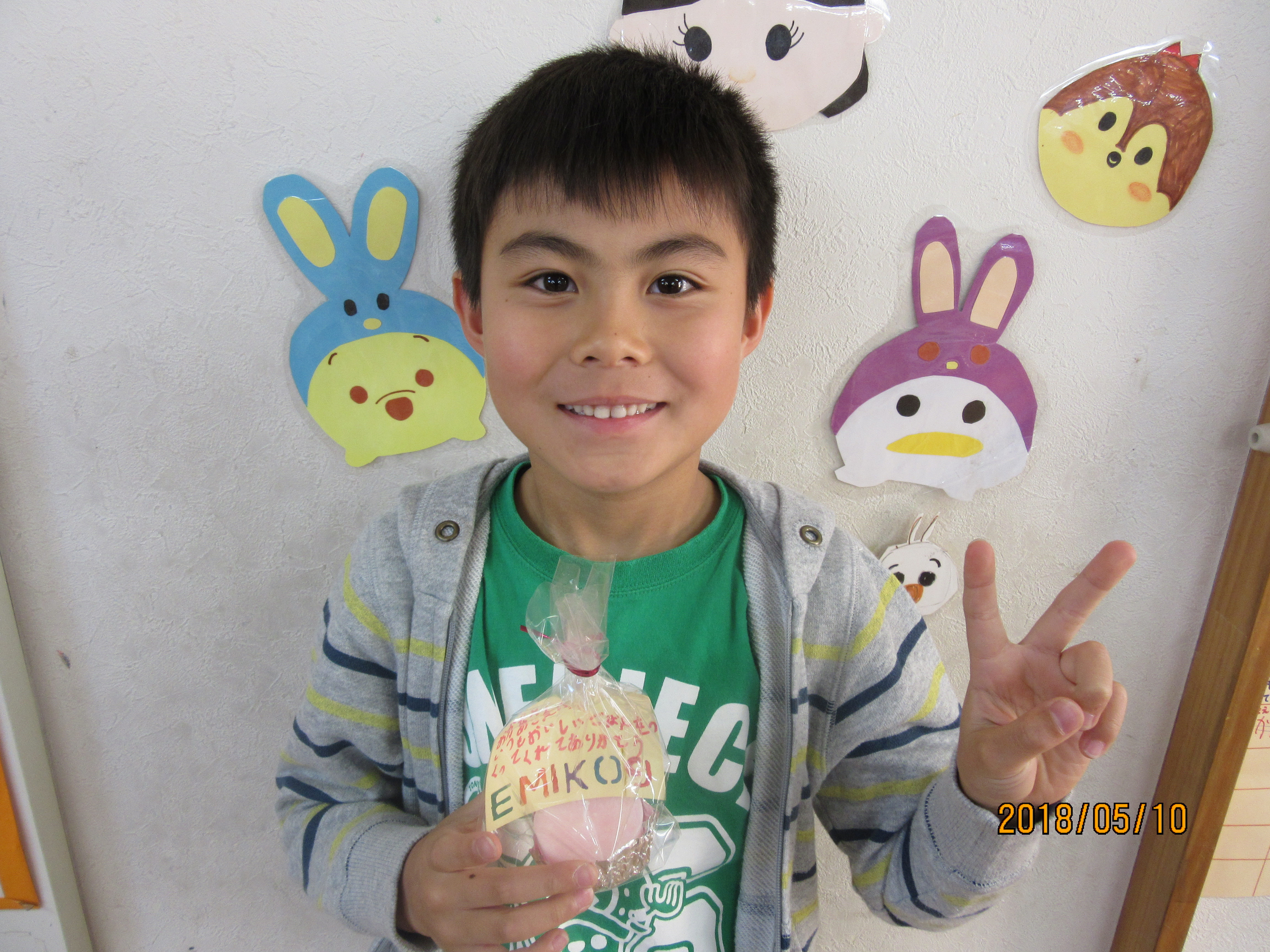 お母さんの好きな色を事前に聞いてくるという宿題を出し、