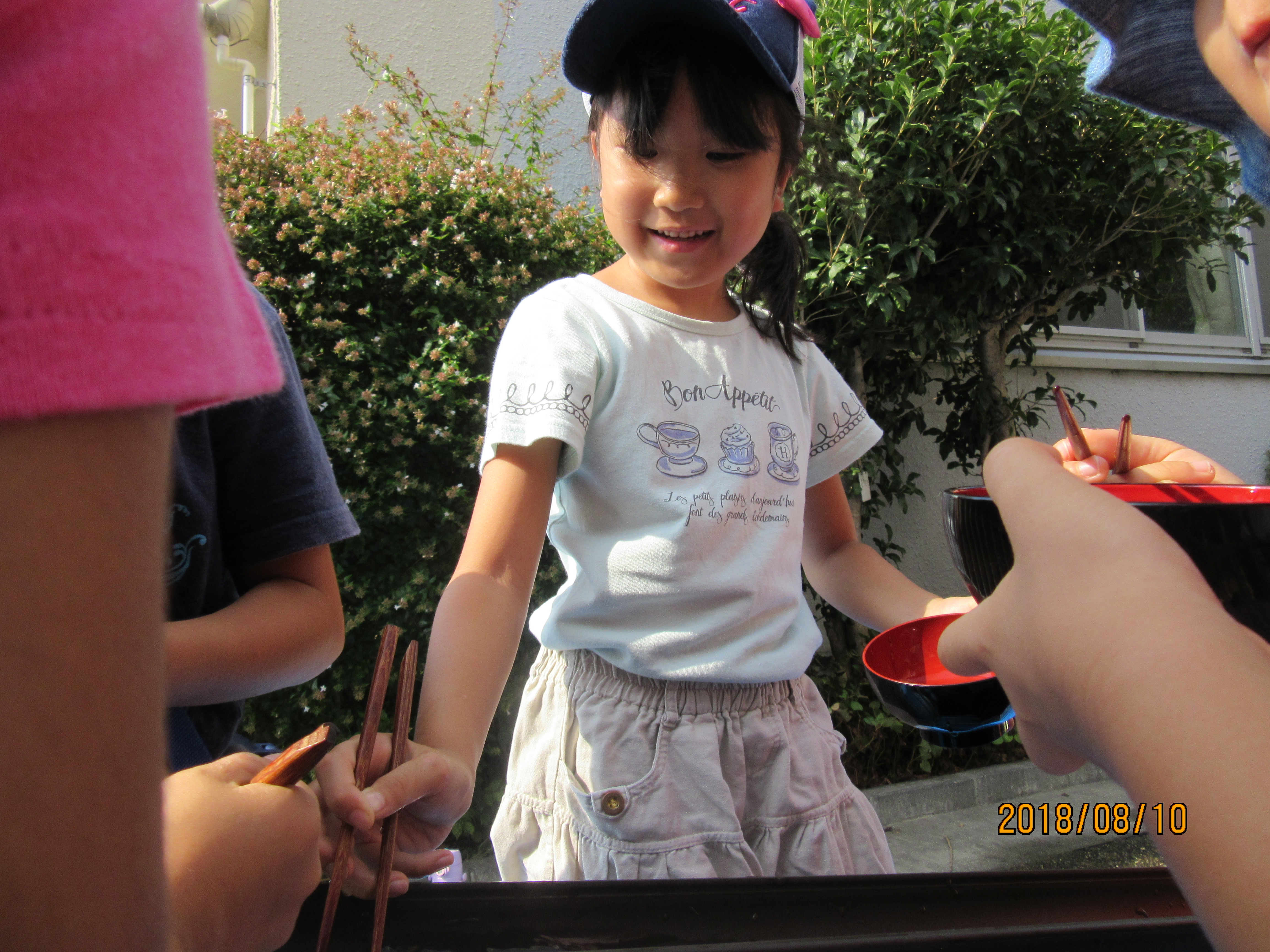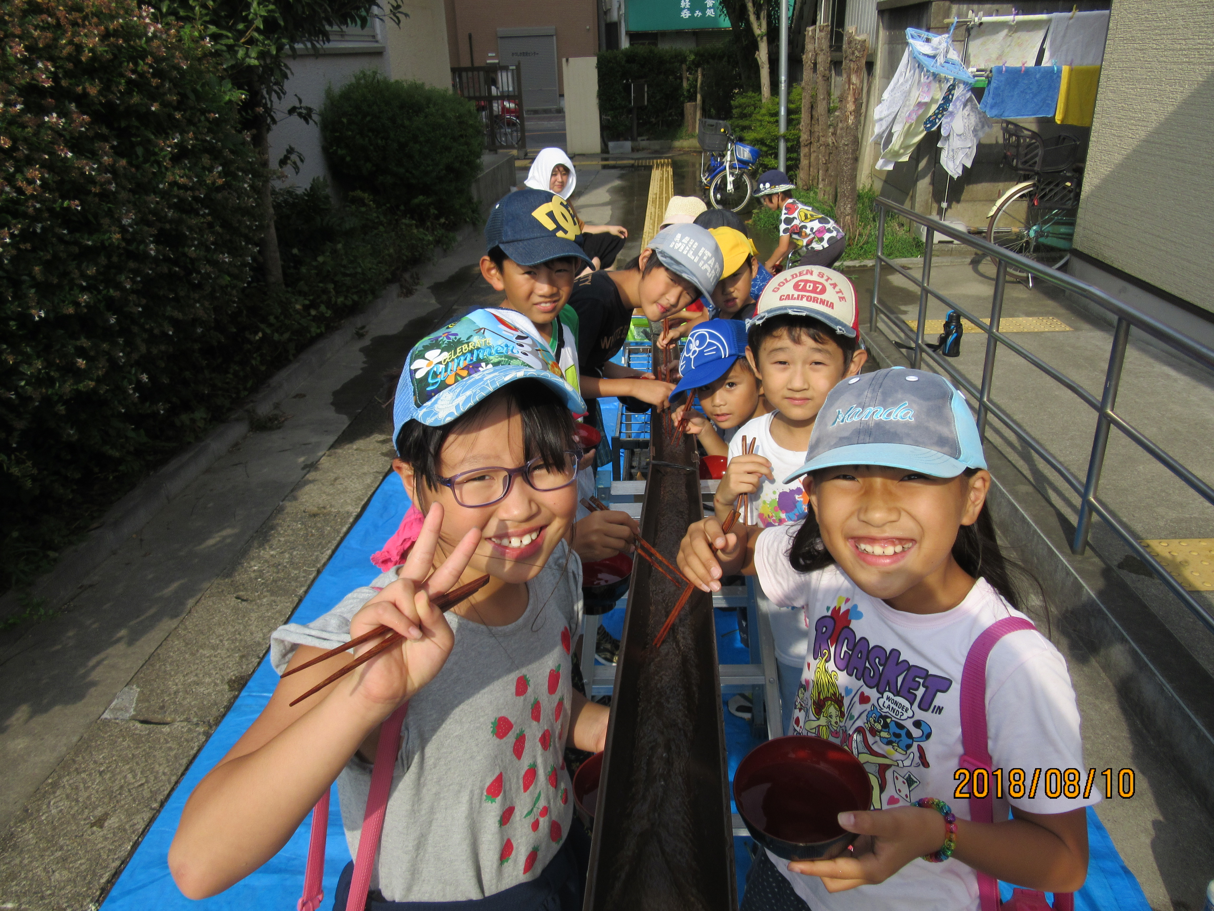 お盆休みに入る前にみんなで流しそうめん♪