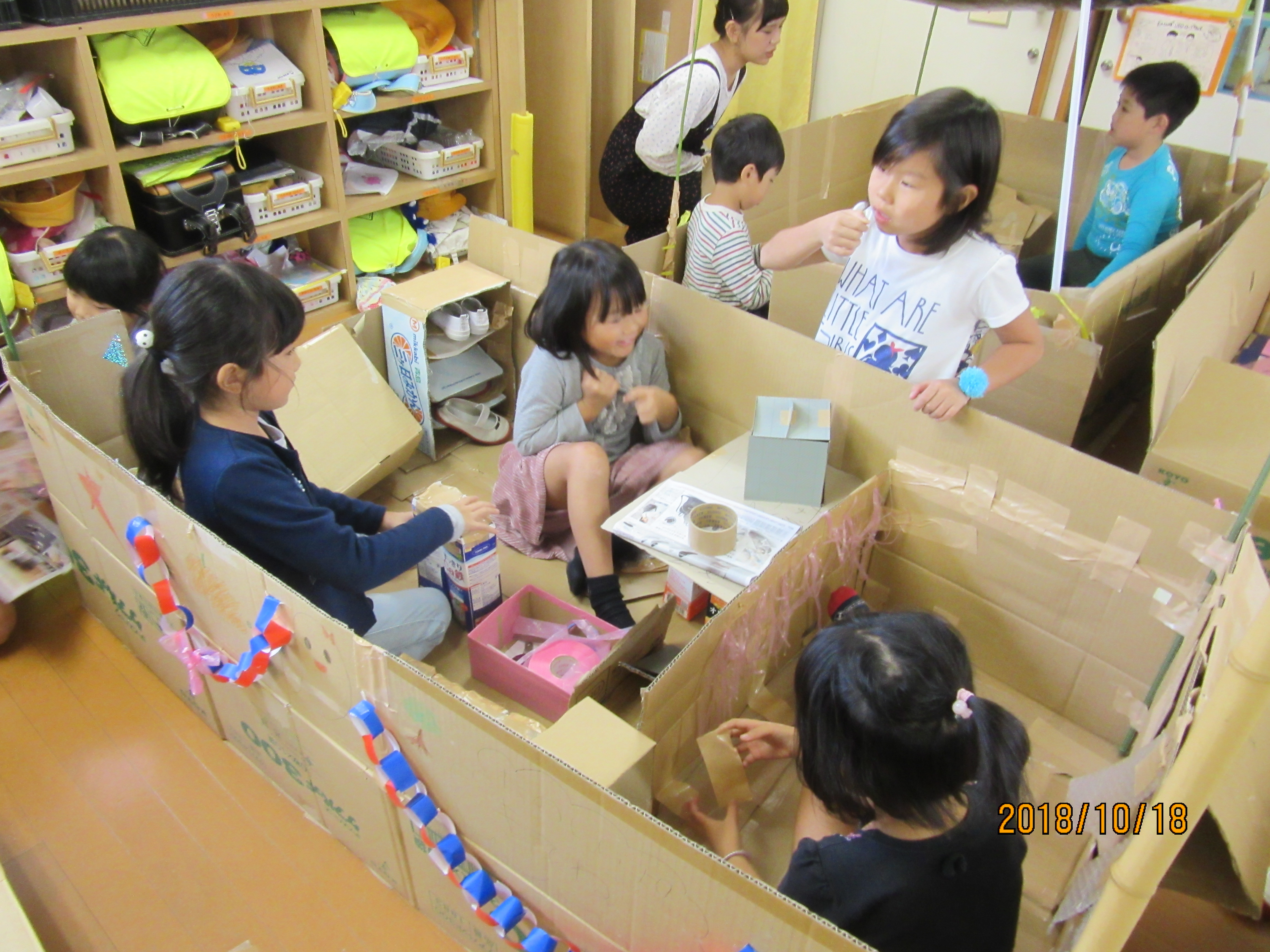 ひよどりの子どもたちが毎年この時期にやりたいと言いに来るダンボールハウス♪