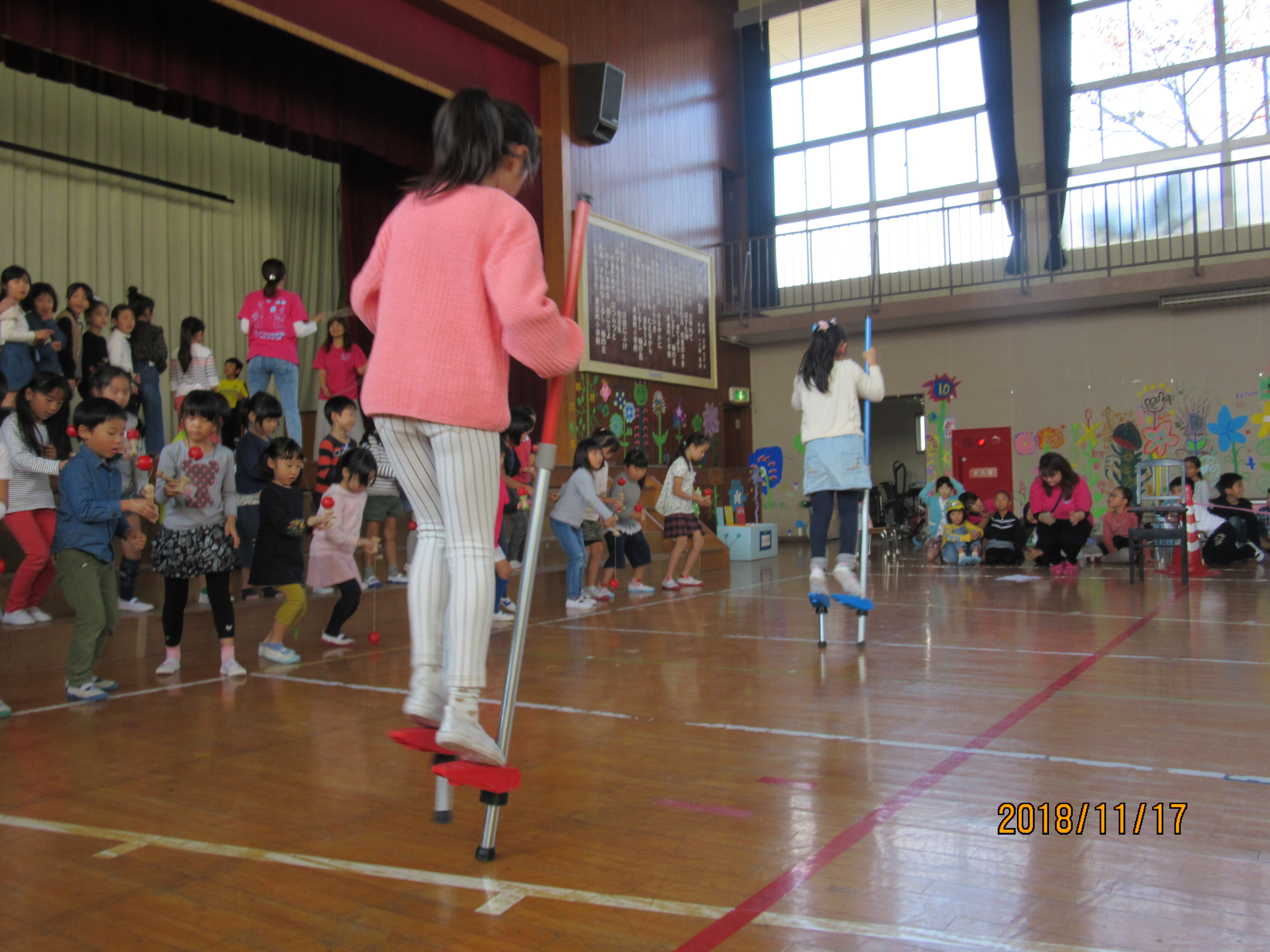 すこやかカーニバル♪ ダブルダッチにけん玉と迫力のあるステージ♪ 今年も盛大にすこやかカーニバルが開催されました!! 沢山の人が参加してくれてにぎやかでしたー★ ここでは、子どもたちがとっても一生懸命頑張った ステージのことを紹介したいと思います♪ その前を竹馬が行き来して盛りだくさん♪ 一輪車はやっぱり安定した演技を披露♪ よ!学童NO.1こま名人★ひものせという大技を見事成功させました!!かっこいい♪ 皆さんのたくさんのご協力に感謝と 子どもたちのやりたい!挑戦したい!という思いに感動★ ありがとうございました!