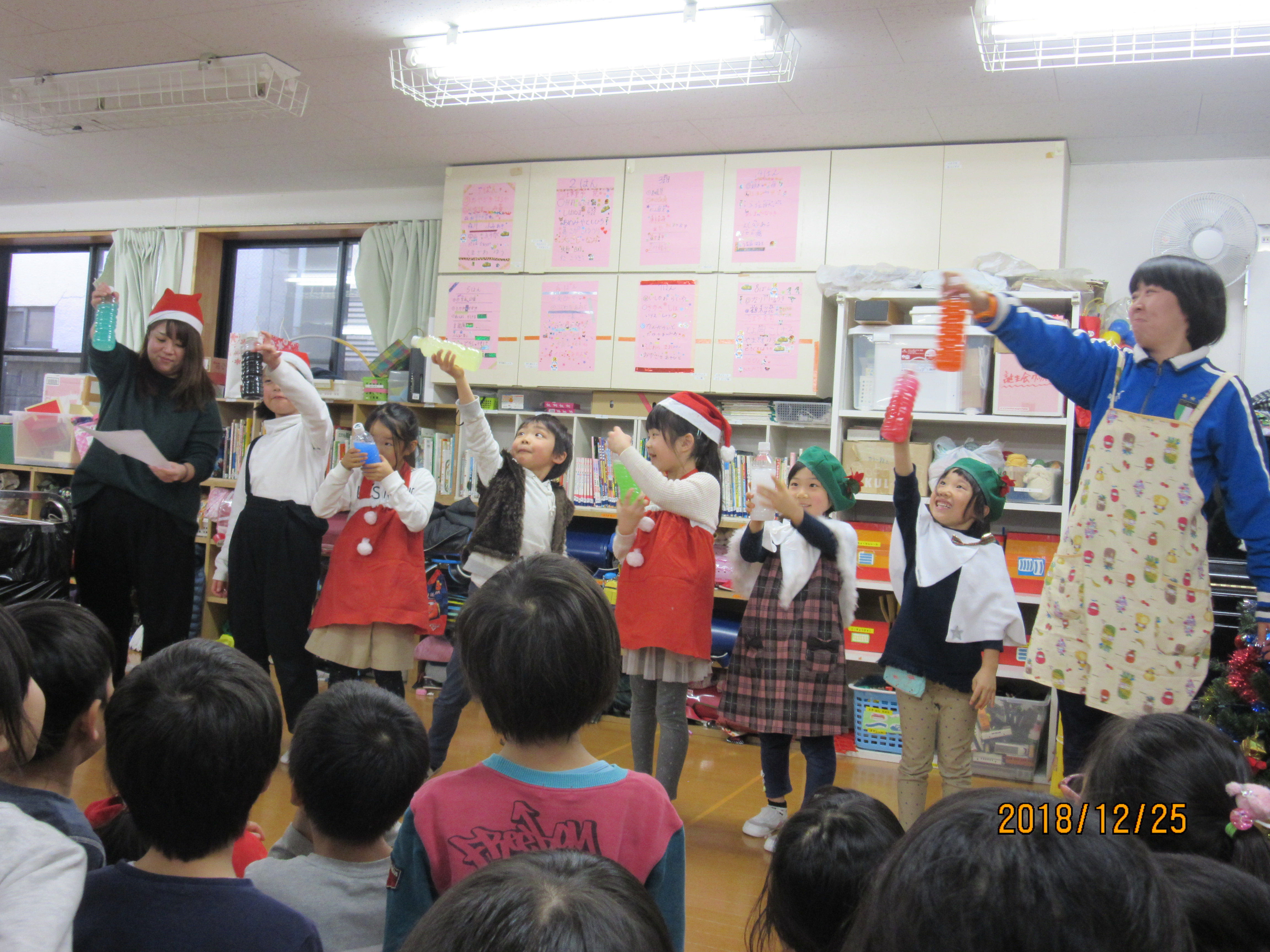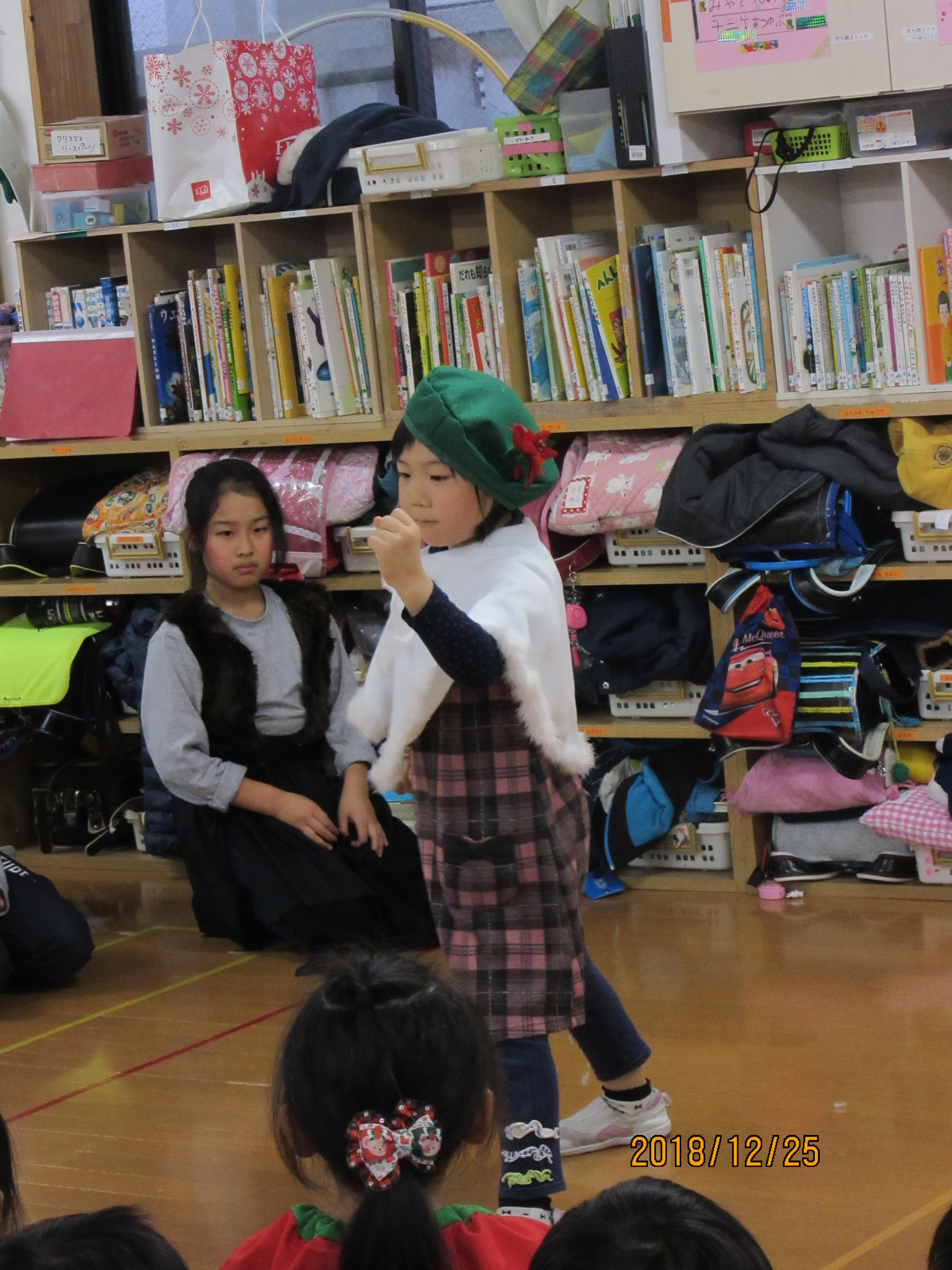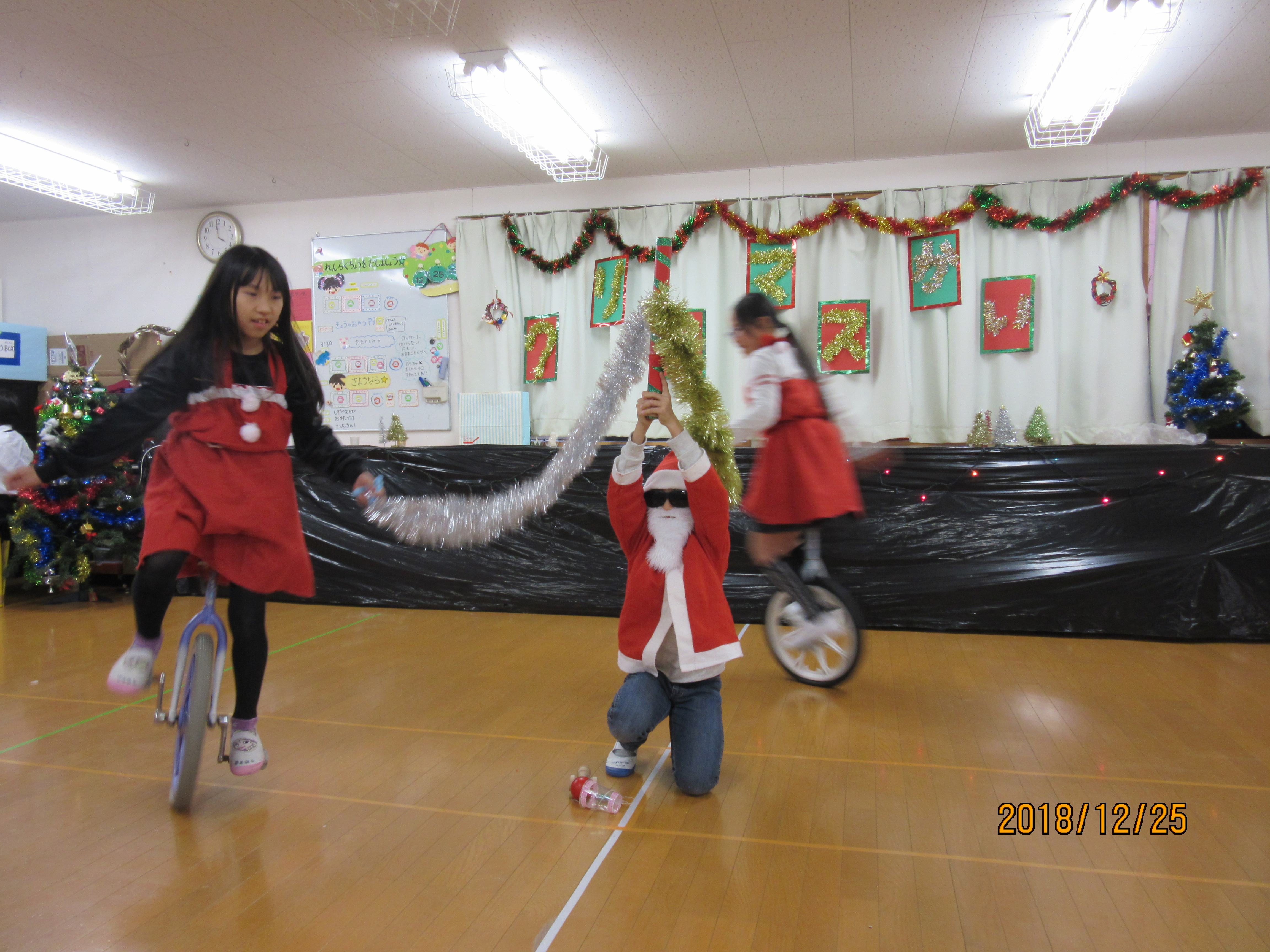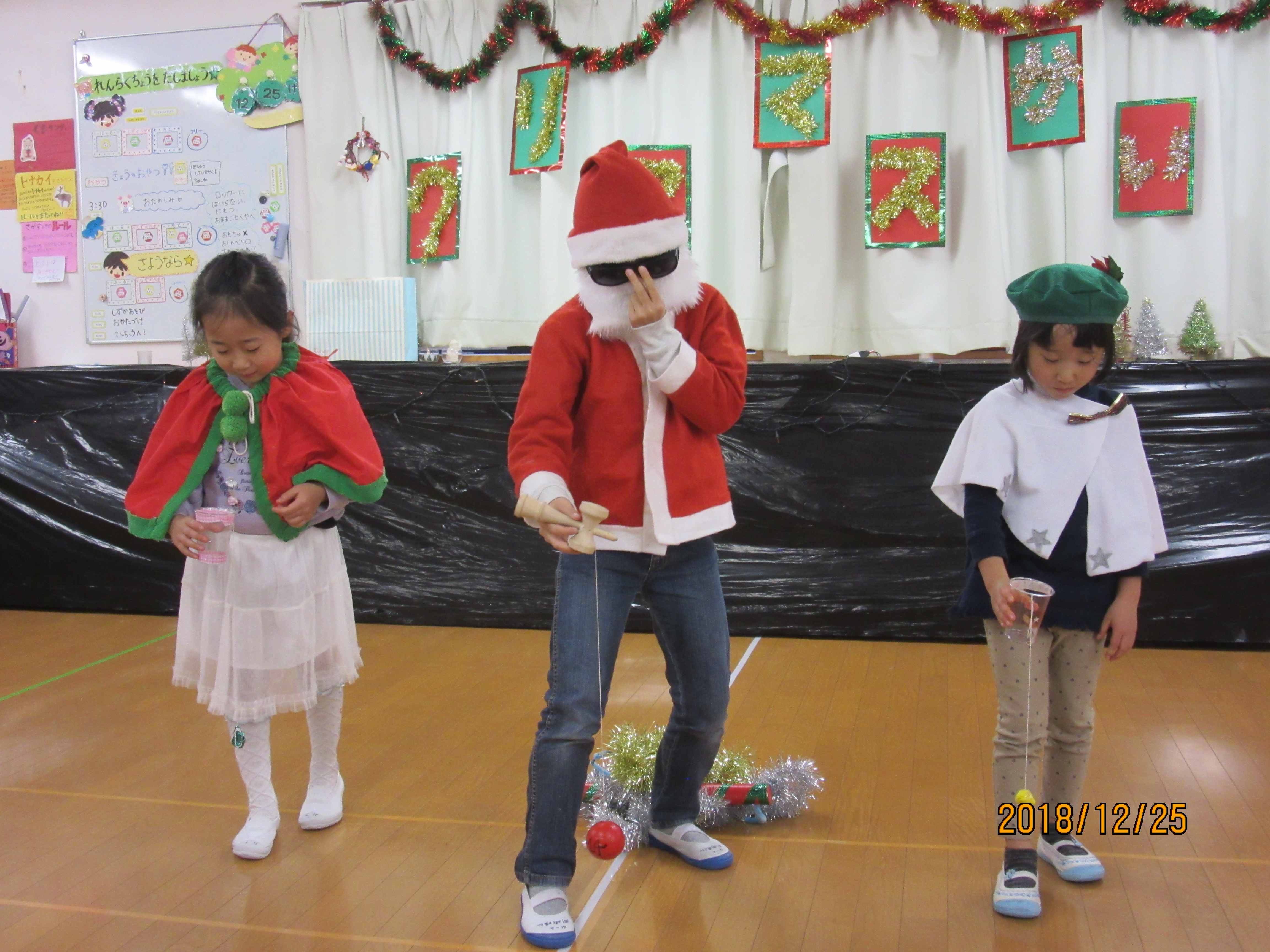 クリスマス会②♪ 手品組〜♪個人個人の手品の最後は皆で大きな手品★迫力ありましたー!! 続いては、発表編♪ 自分達で発表したい何かを考えて、 どういう風に披露するか企画し、 発表する自慢大会★ 今年は様々な種類の発表があり、 とっても見ごたえありました!ヽ(≧▽≦)ノ クリスマスのピアノの合わせてけん玉や一輪車を披露♪ピアノはひよどりの何でも器用にこなせる3年生★ ひよどりNO.1のけん玉王と1年生の手作りけん玉を披露♪ 一輪車ではモールを使った一工夫加えた演出でとっても綺麗に♪ テコンドーと空手の型!!シーンとした雰囲気の中、空気を割るようなパンチをしたりととてもかっこよかった♪