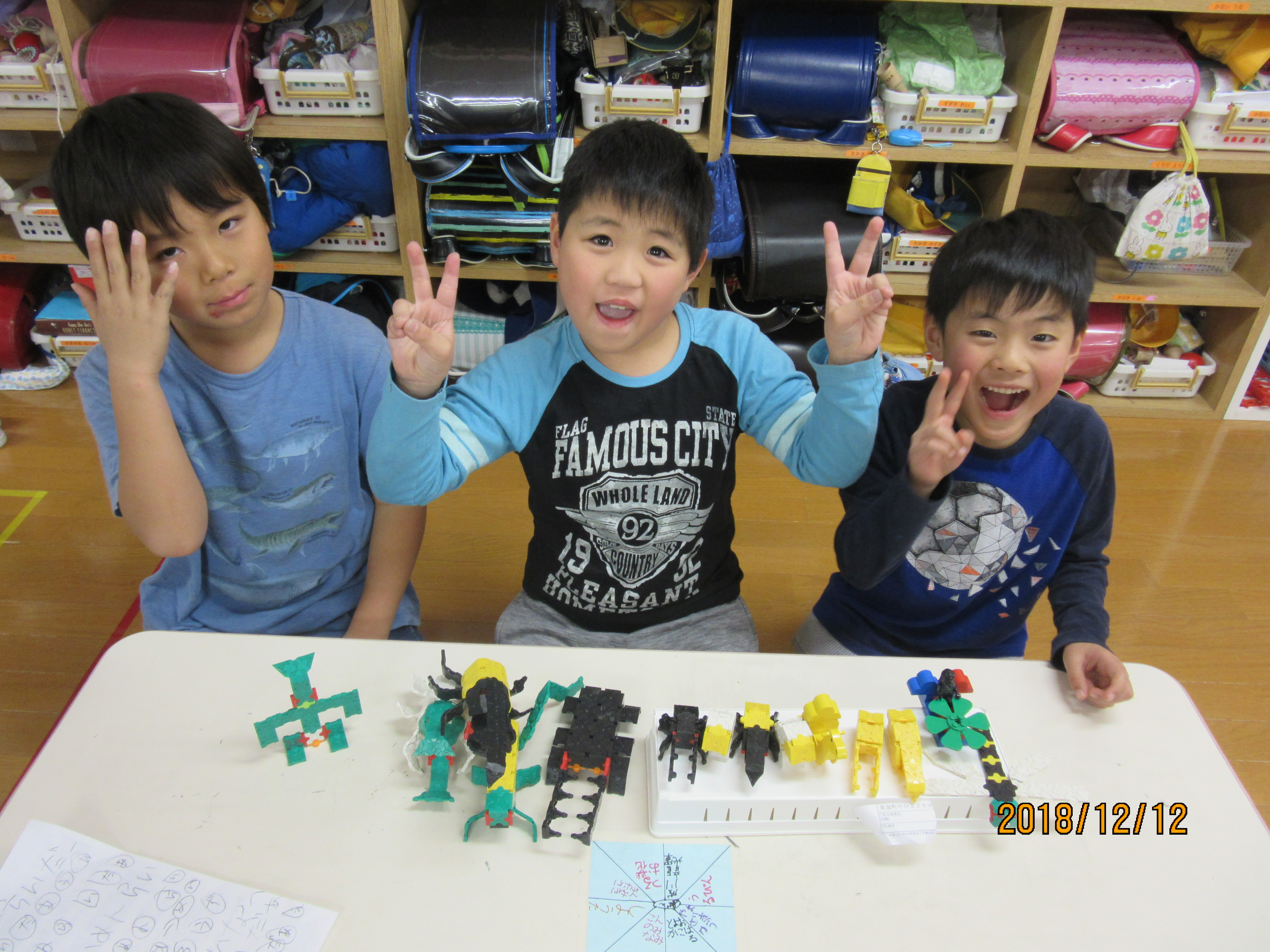 ラキュー作品♪ 虫を作らせたら右に出るものはいないメンバーです♪ なんだか12月はラキューの作品で とてもこった作品が作られることが多かったので ご紹介をしたいと思います♪ こんなに立派な作品を作れるようになったんだなぁ♪ 自分達の作品を写真に残せるのは子どもたちにとって、とても嬉しいことです♪