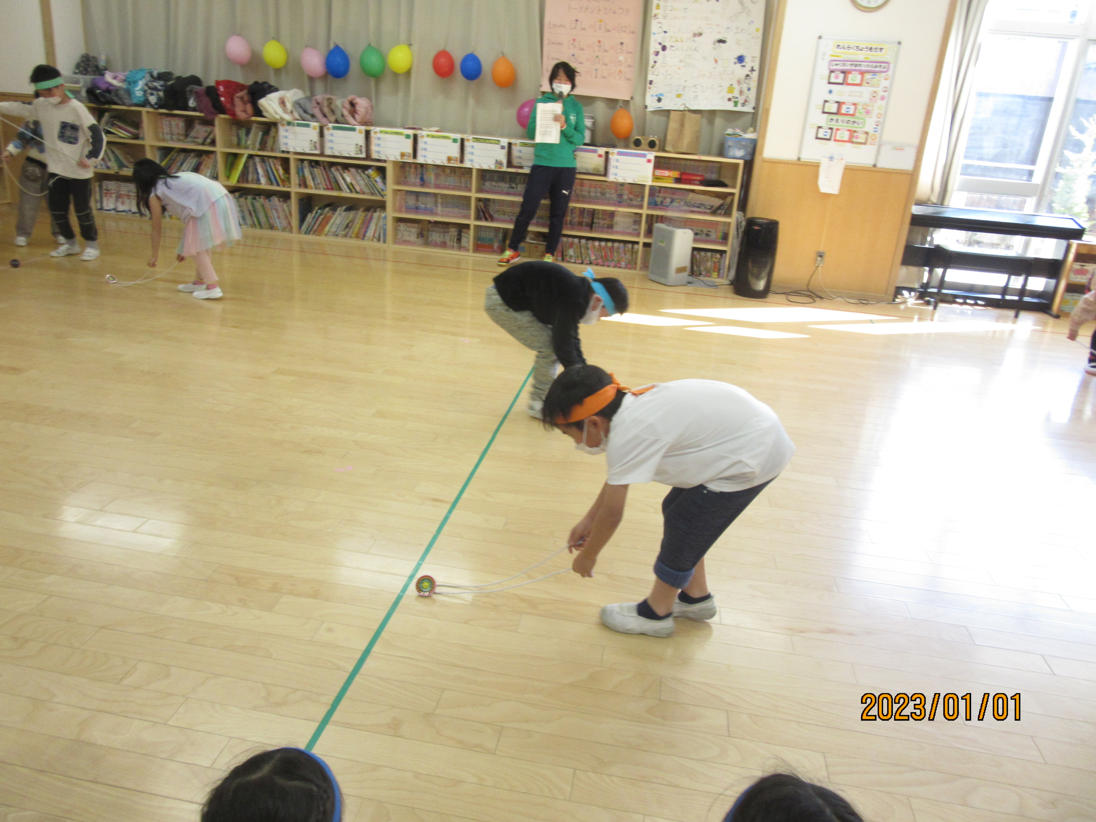 今年度は独楽に触れることを楽しみ、紐を結べたり、回せたり、何か一つ出来たことを喜ぶことを目標に行いました。独楽まわし大会を通して、出来なかった事が出来た喜びをみせてくれる姿が沢山見られました♪また来年も楽しもうね!(^^)!